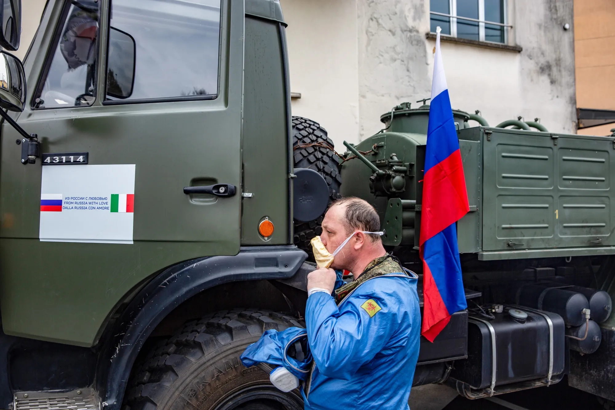 一名俄罗斯军人在意大利贝尔加莫附近的圣彼得罗护理院进行全面消毒后,站在他的卡车旁,时间是4月1日。摄影师:弗朗西斯卡·沃尔皮/彭博社当然,法国和德国正在推动更具合作性的方式,在5月4日的虚拟二十国集团筹款活动中,确保了74亿欧元(80亿美元)的承诺。与此同时,比尔和梅琳达·盖茨基金会表示,它将建立生产能力,以便在疫苗尚不存在之前就能提供多达七种疫苗,这是确保广泛和快速可用的前所未有的努力。