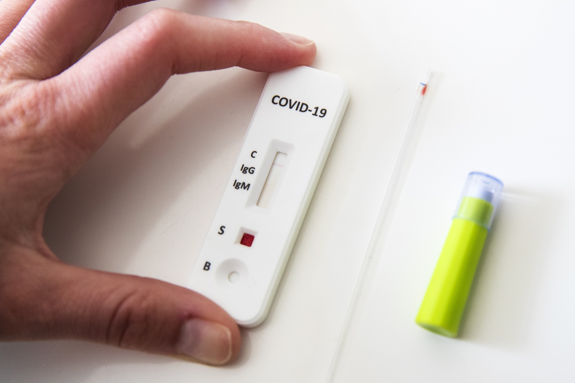 一种家庭用的Premier Biotech Covid-19抗体快速检测盒。