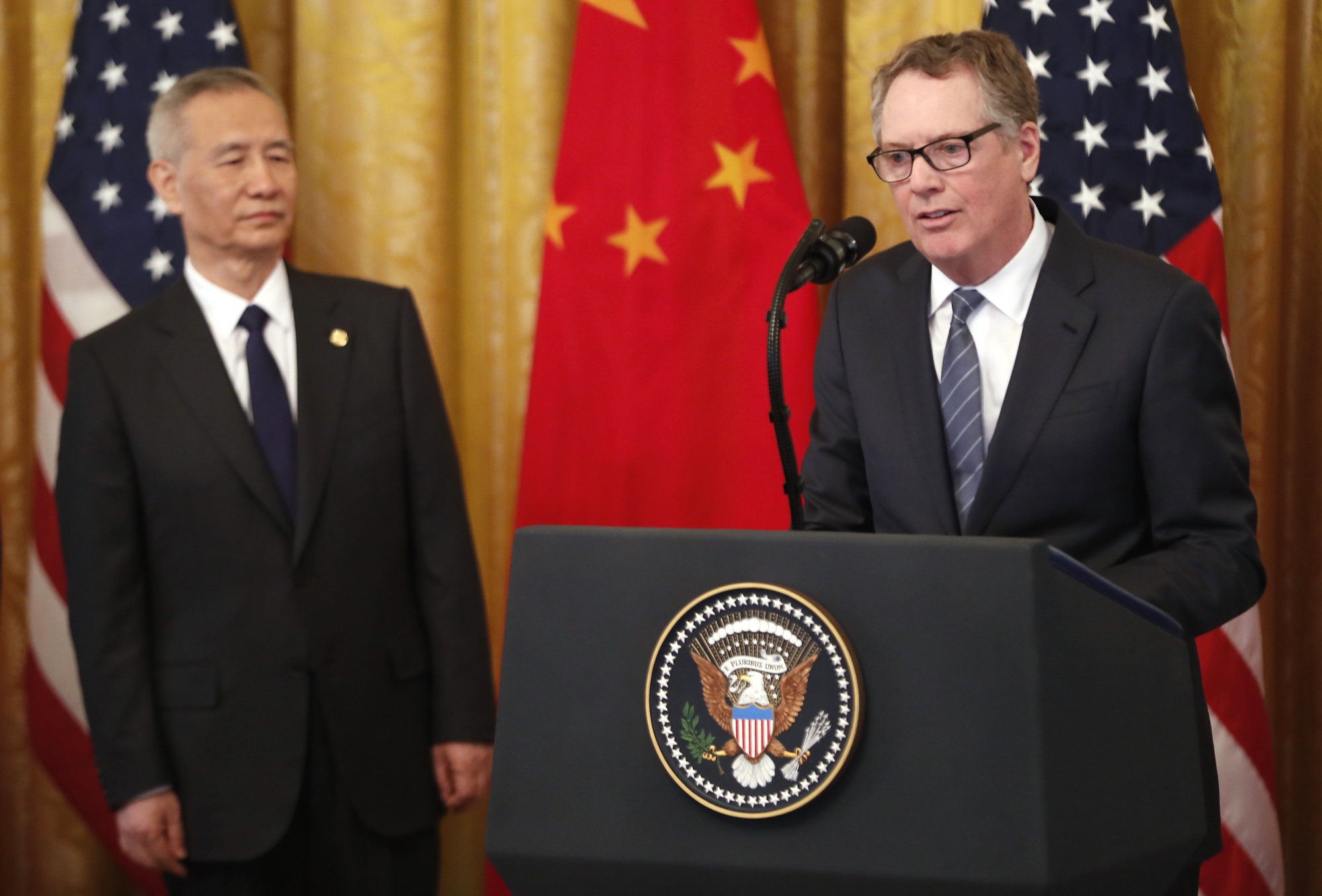 莱特海泽在一月份的美中“第一阶段”贸易协议签署仪式上。