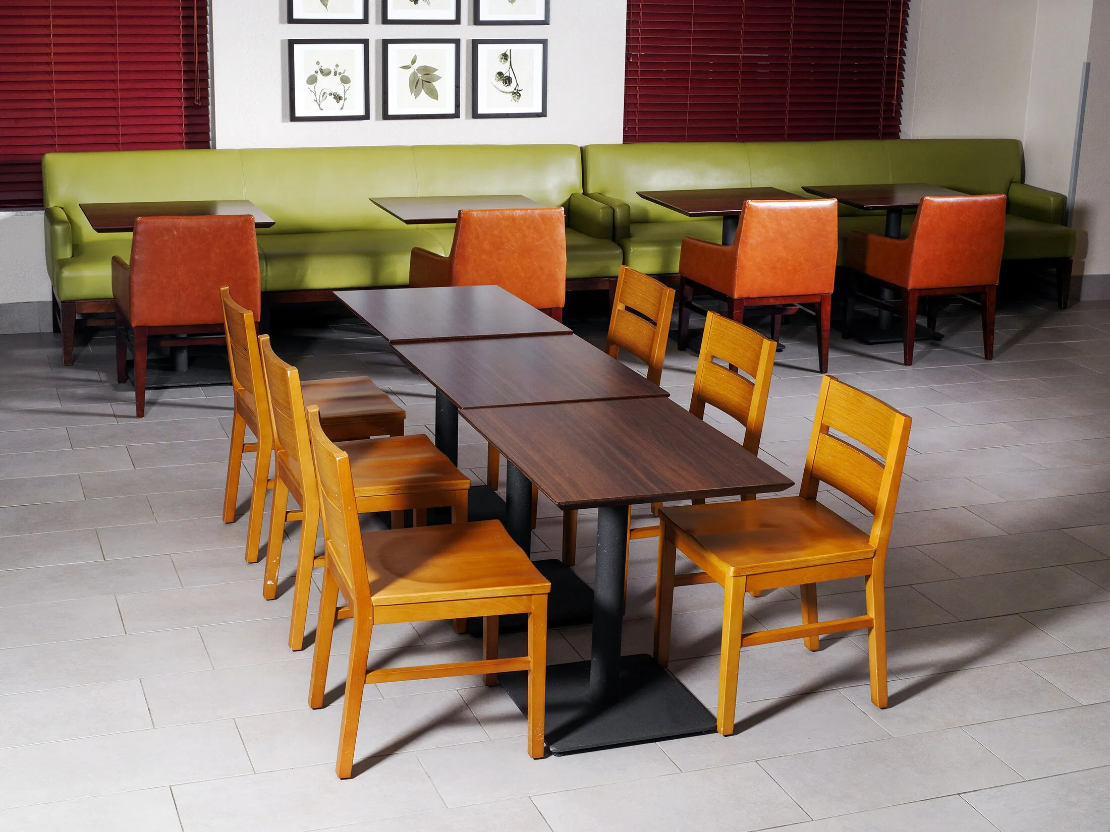 乡村旅馆与套房的用餐区。摄影师:约翰森·凯尔索(Johnathon Kelso)为《彭博商业周刊》拍摄帕特尔和达斯能够通过薪资保护计划获得资金。该计划是国会在3月批准的2.2万亿美元救助法案的一部分,为不裁员的小企业提供自动转为赠款的贷款。