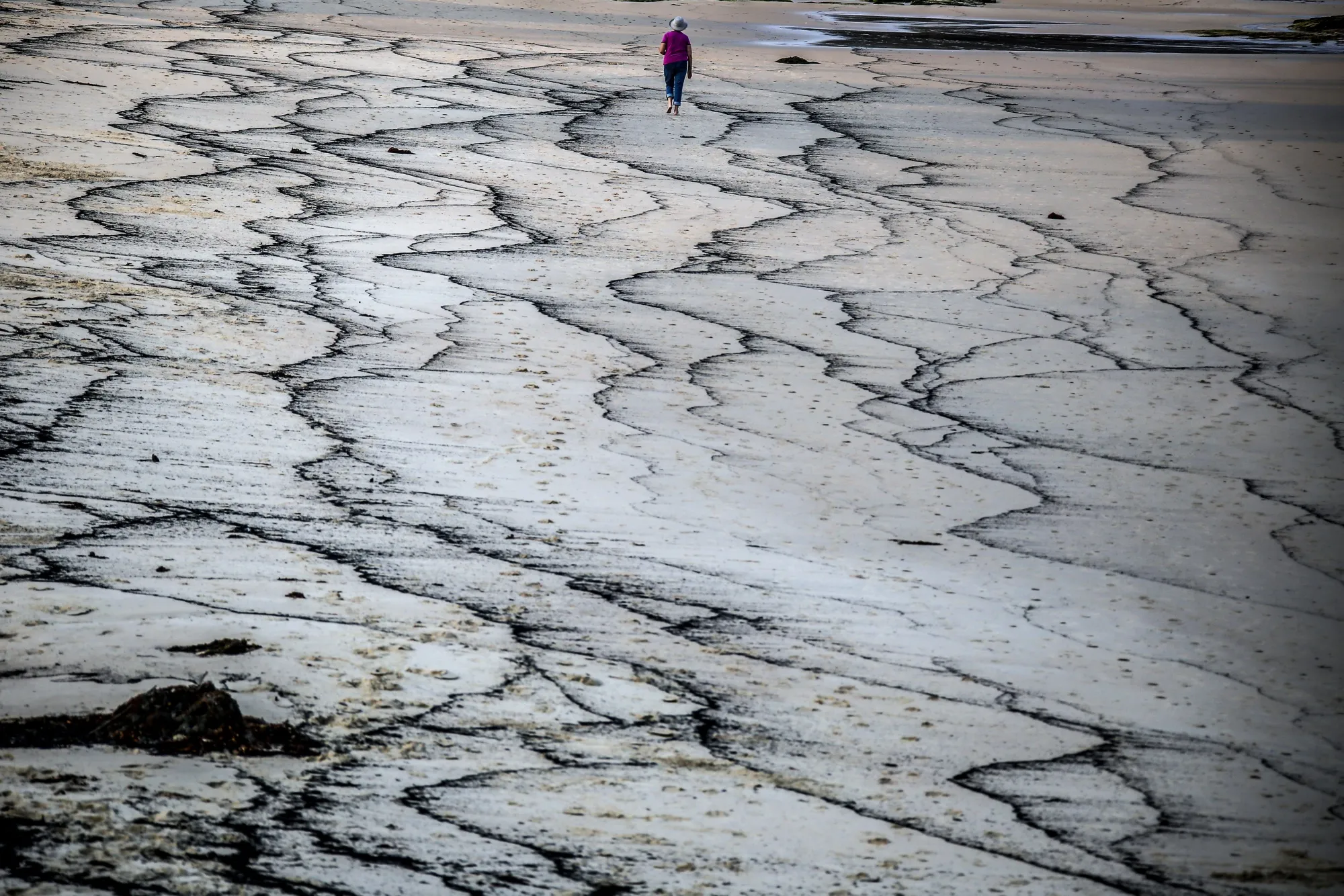 1月13日,来自新南威尔士州Milton附近的Narrawallee海滩的野火灰烬形成了图案。