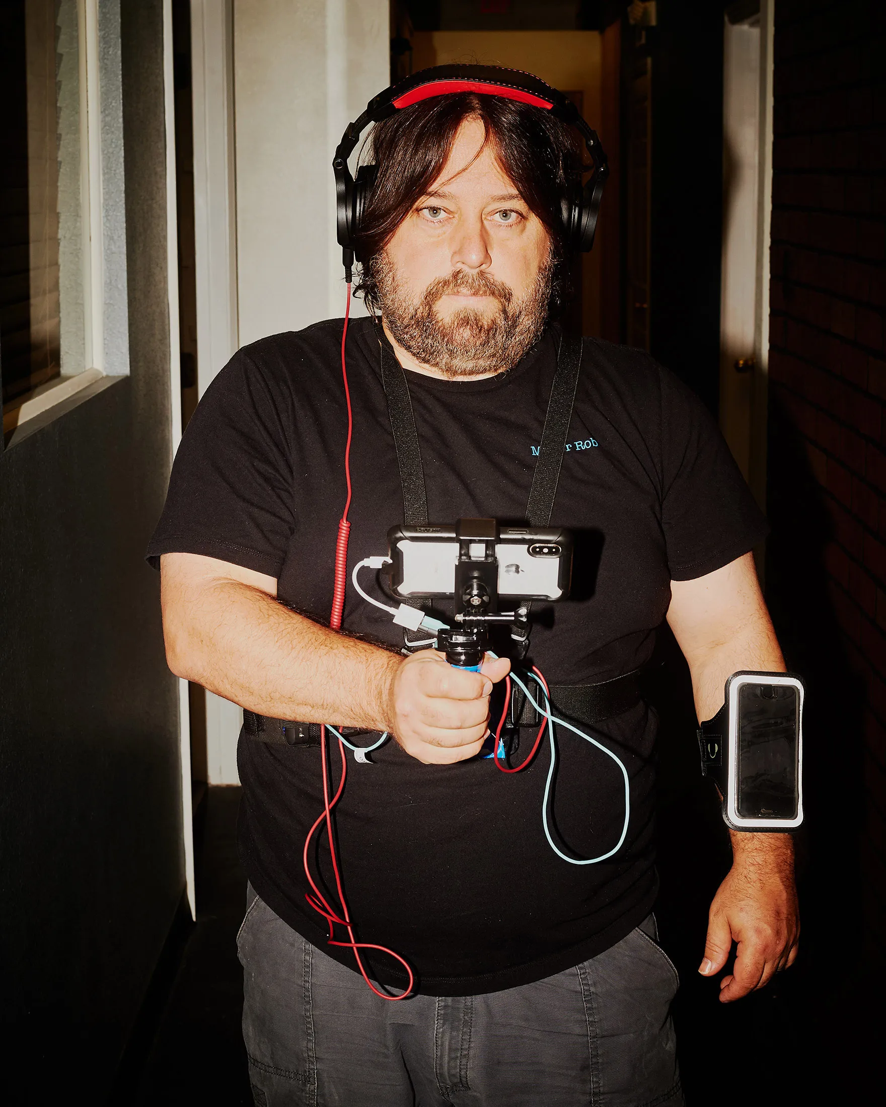 法伊拉创造了一种通过将一对iPhone固定在自己身上来虚拟体验逃脱室谜题的方法。摄影师:扎克·维特曼,彭博商业周刊他着手将面对面的游戏转变为虚拟游戏。在新游戏中,客户通过视频会议进行游戏,法伊拉扮演小镇市长,努力破解一起失踪案件。手机绑在他胸前,他是玩家的眼睛、耳朵和手,帮助他们筛选线索和打开锁。这一做法大受欢迎。票务已经售罄到六月份,客户来自澳大利亚和印度等遥远地方。