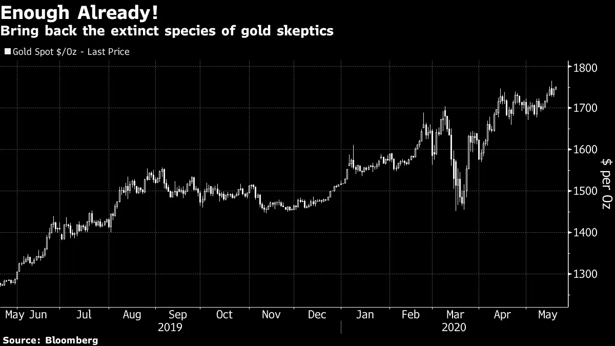 就像一个青少年反抗过于保护的父母的窒息爱,黄金可能会在接下来的几周内让很多人感到不安。我很少见到如此一致的看涨黄金的观点。考虑到中央银行以刺激计划的形式释放大量现金,而世界正遭受100年来未见的疫情,这完全是合乎逻辑的。再加上美中贸易紧张局势和其他政治问题的常规影响,现在似乎是投资避险资产的好时机。问题在于这些因素现在都已经过时。震撼与敬畏的政策支持是三月和四月的主题。投资者对病毒新闻变得麻木。而自唐纳德·特朗普担任总统以来,美中紧张局势已成为常态。资产通常在边际新闻上交易——这波黄金上涨需要尽快一些新鲜的刺激,否则可能会迎来一次严重的修正。