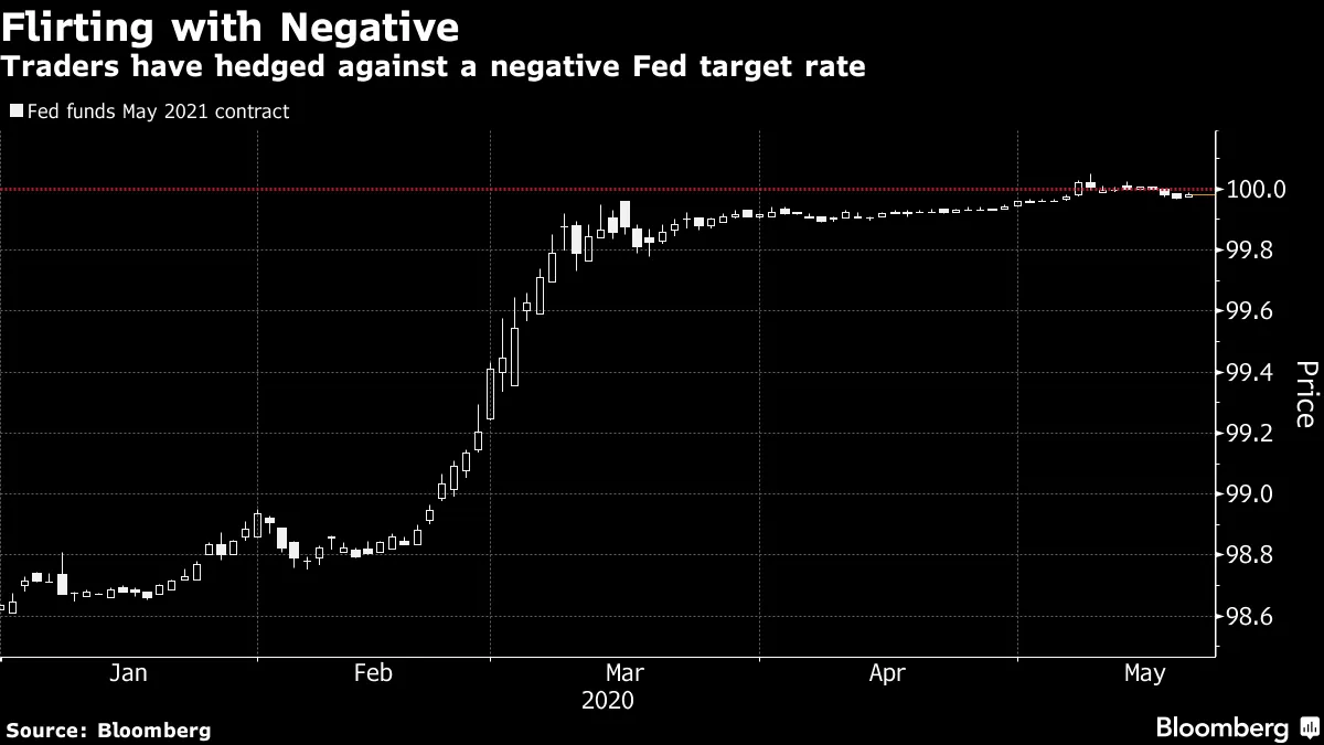 到周中,大多数联邦基金合约的交易价格回落到平价以下——这意味着正的目标利率——与2021年4月联邦公开市场委员会会议相关的隔夜指数掉期交易回到了美联储的0-0.25%目标区间。但欧元美元期权仍显示出对进一步降息的需求。