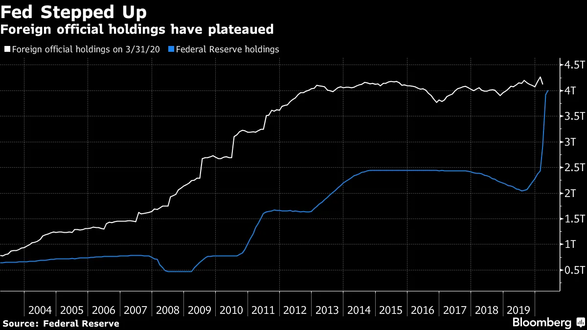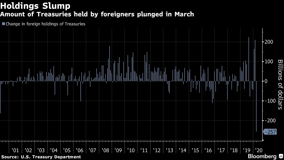 追踪的是,财政部报告称,外国投资者持有的国债总额在3月份——当市场遭受冲击时——以自2000年以来最大幅度缩减。