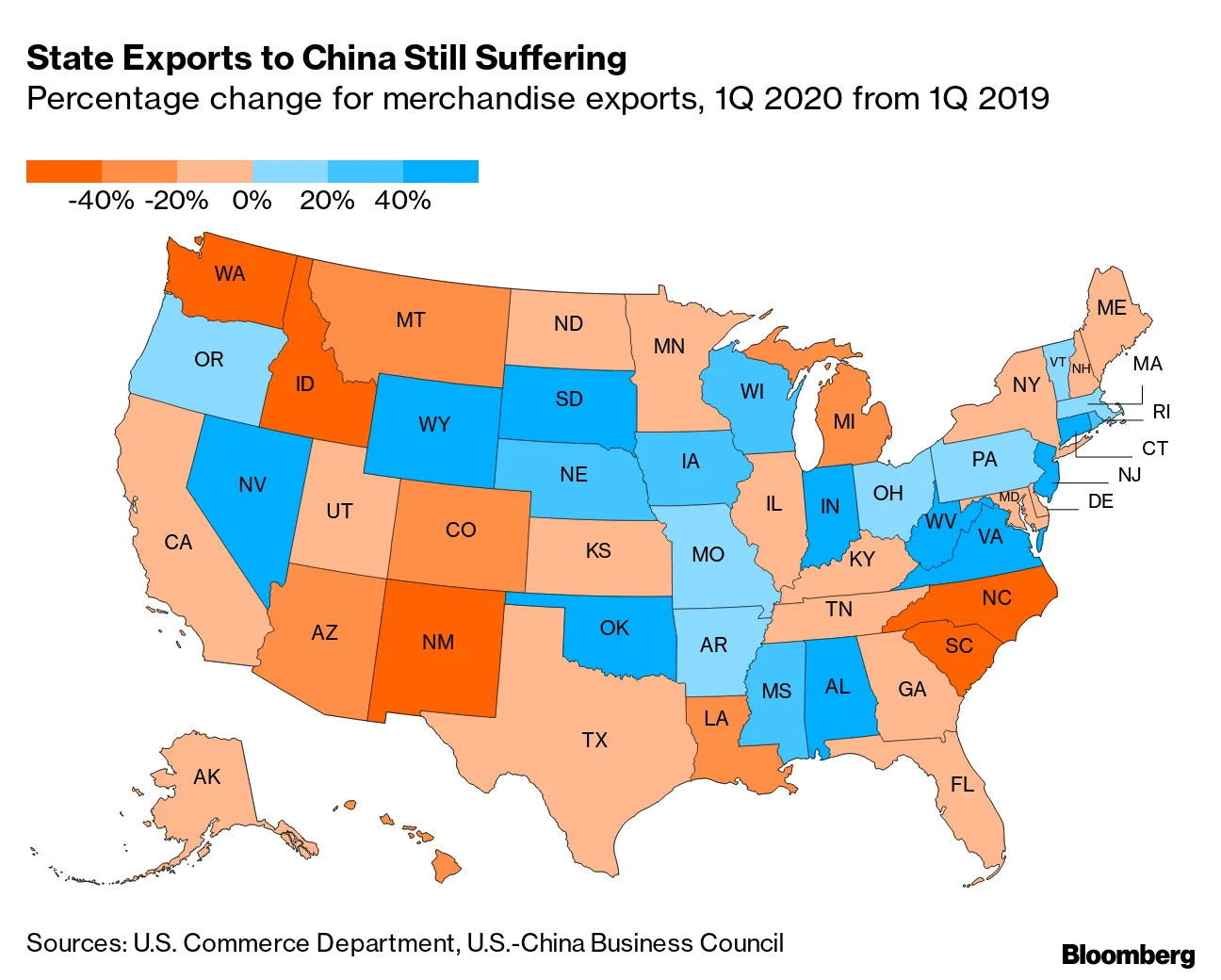 正如Bloomberg的Anita Sharpe周五报道,尽管疫情肆虐、封锁和持续的贸易摩擦,阿拉巴马州对中国的汽车出口在2020年第一季度同比激增超过170%。