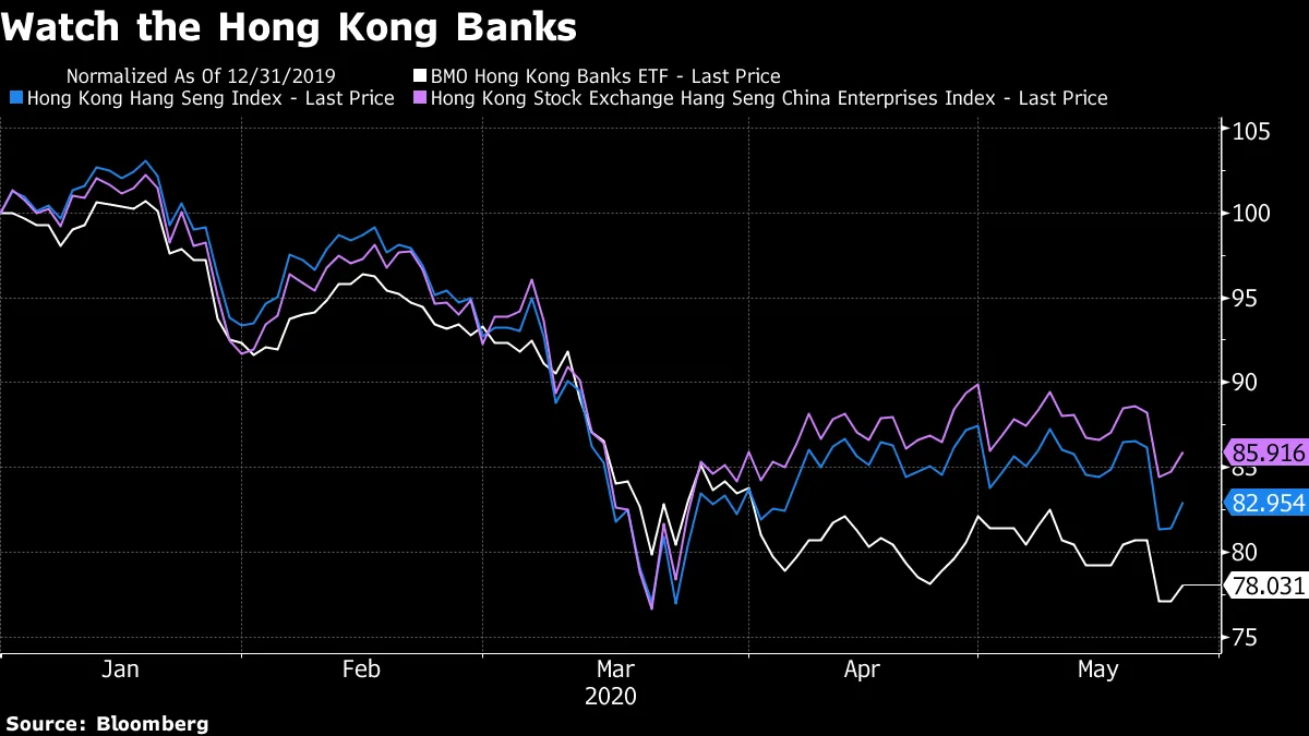 香港银行在最近几周已经表现不及更广泛的香港市场,如果对资本外流的担忧加剧,预计这种情况将持续。正如Medley Global Advisors的Ben Emons所指出的:“如果香港的自治权受到质疑,资本外流可能会远远超过贸易战期间的情况。”