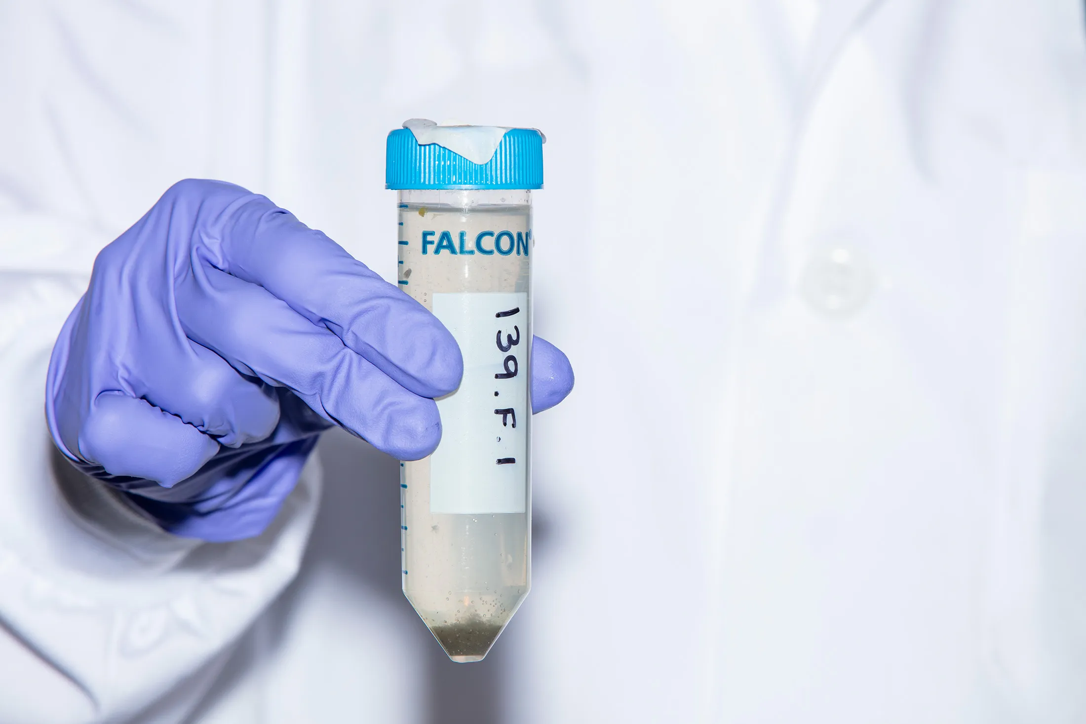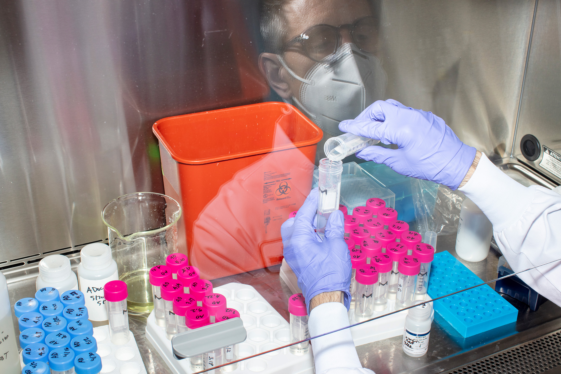 艾瑞克·阿尔姆博士,Biobot Analytics的科学主任以及麻省理工学院生物工程教授,在公司的实验室中准备废水样本以进行RNA提取和新冠病毒分析。
