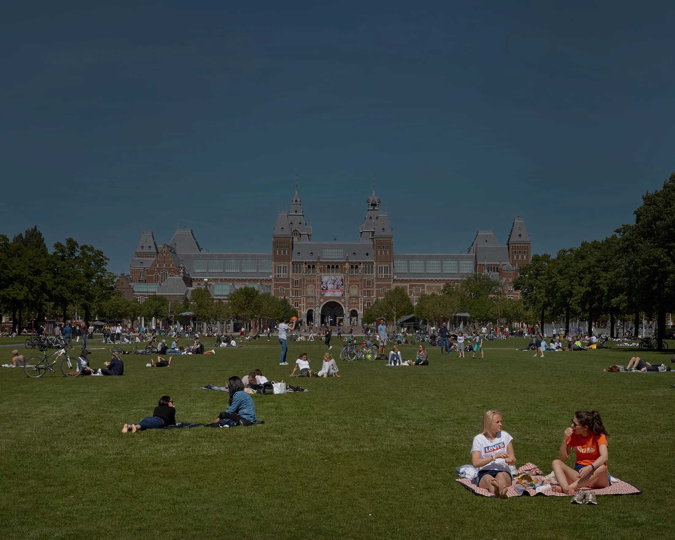 这将是一个挑战。当5月21日的全国假期气温攀升至70多度时,公园里的游客人数变得过于庞大,无法保持社交距离,警方 关闭了公园以防新游客进入。到下一个假期6月1日,阿姆斯特丹当局已安装了人群控制围栏,并在草地上画了圆圈以限制团体之间的接触。在经历了如此长时间的隔离后,“街道上的交通将会非常繁忙,”我街角的比萨店老板马丁·波特吉瑟预测道,“比去年夏天还要多。”