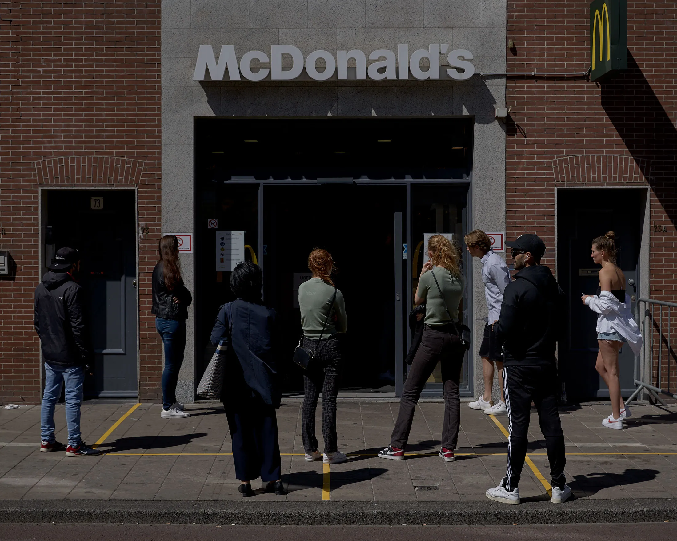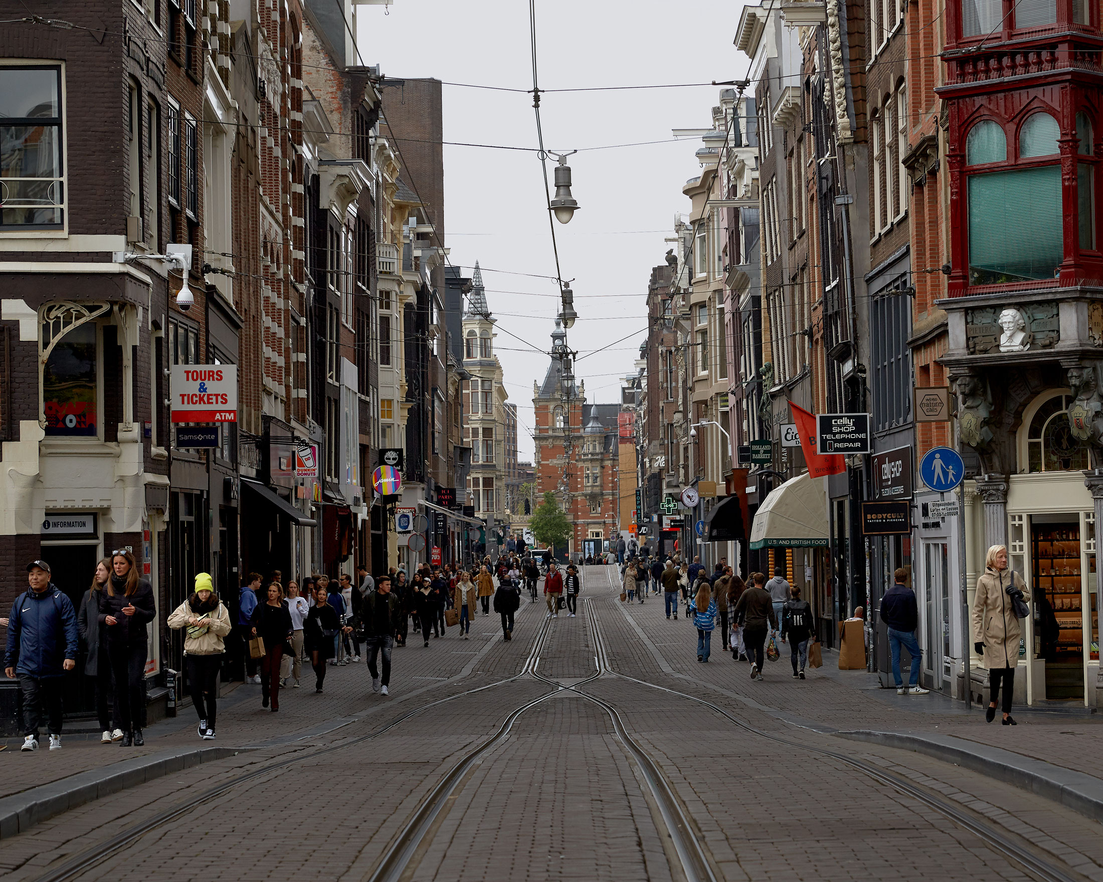 摄影师:Sem Langendijk 为彭博商业周刊在阿姆斯特丹的铸币塔对面的小广场上,荷兰共和国在17世纪制造硬币的地方,开始了卡尔弗街,这是荷兰最繁忙的购物街之一。这里有H&M、耐克、斯沃琪和施华洛世奇等数十个主要品牌。在疫情前的一个星期六,大约每小时有7000人可能经过这条步行街的商店。