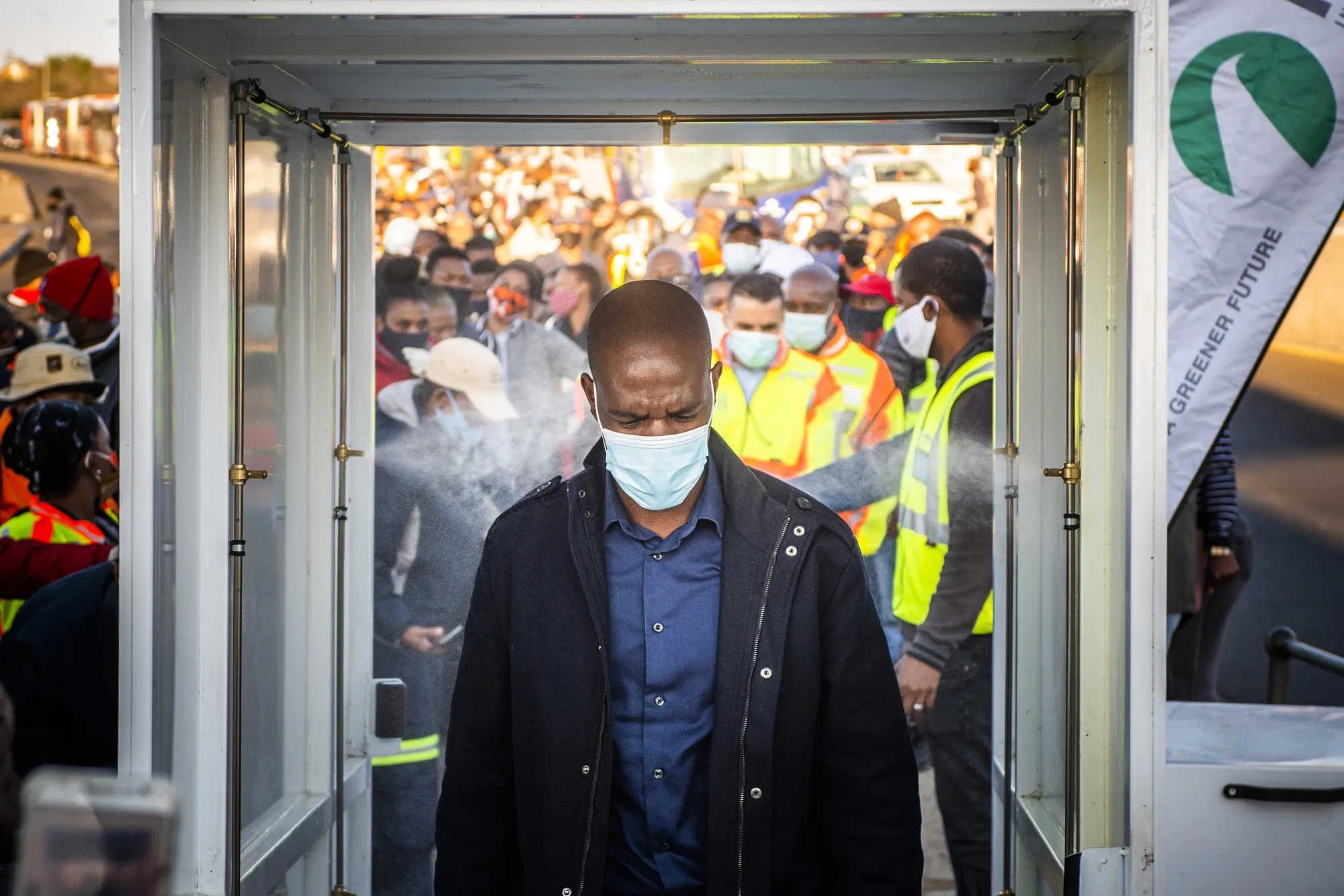 一名通勤者走过约翰内斯堡索韦托公交车站的卫生隧道。摄影师:瓦尔多·斯维格斯/彭博社