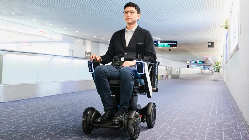 **移动机器人。**东京羽田机场正在为旅客提供自主轮椅的乘坐,使用摄像头和传感器帮助乘客在安检到登机口之间保持社交距离。