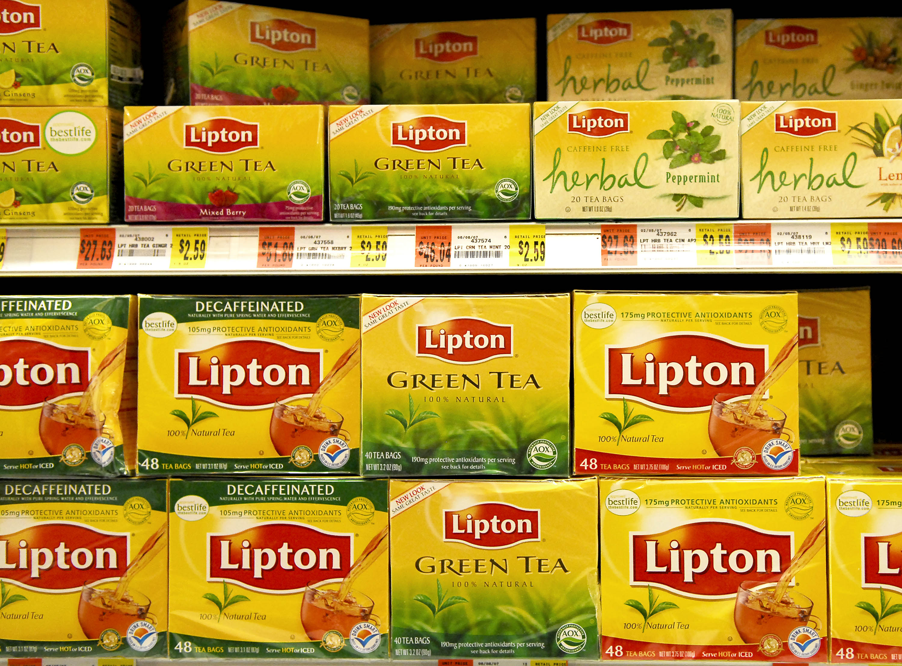 2007年7月9日,纽约的一家联合超市展示着立顿茶的盒子。