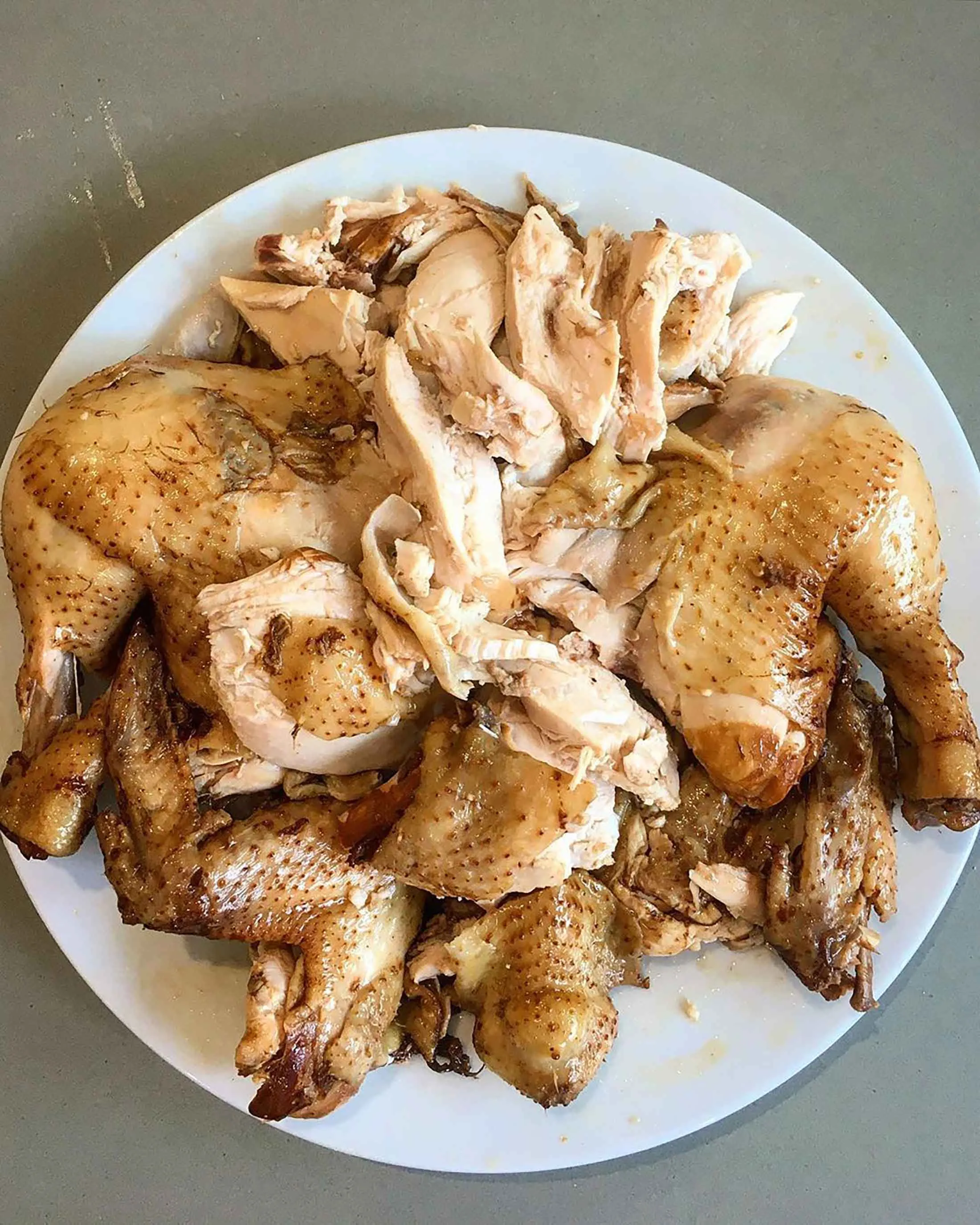 酱油鸡:“我第一次尝试粤式酱油鸡:颜色没有我预期的那么深,尽管使用了深色酱油腌制,但炖煮液体中富含八角、肉桂、丁香、大蒜、生姜、芝麻油、葱、月桂叶和红糖。我将液体减少后淋在肉和米饭上,搭配一款用Grolleau葡萄酿造的卢瓦尔红酒Groll n’ Roll。”摄影师:霍华德·蔡-欧安在封锁的几个月里,我通过在家做饭和吃饭节省了大量的钱。但计划一顿饭、切菜、注意刀刃和热油、洗碗、重复这一切是需要时间的。我坚信,餐厅团队中最重要且严重低薪的成员是洗碗工和备餐厨师。他们应该得到良好的报酬,因为他们使城市生活的短暂乐趣成为可能——而这反过来又让我觉得自己是哲学连续体的一部分。将近2400年前,伊壁鸠鲁说过:“不是我们拥有的,而是我们享受的,构成了我们的富足。”