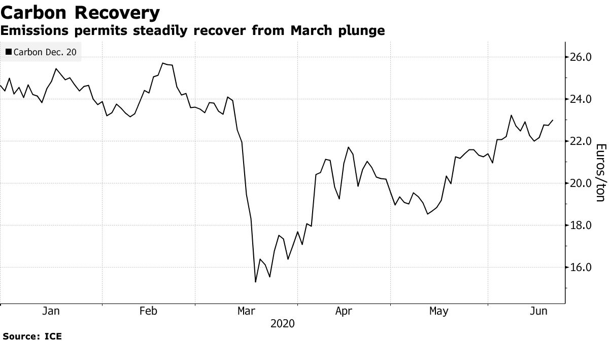 这是一个看涨的信号,自3月中旬欧洲冠状病毒封锁达到顶峰以来,该市场已上涨约60%。现在,随着经济逐渐开放,需求被认为是由金融参与者推动的,而不是仍然对许可证需求相对低迷的公用事业或工业公司。