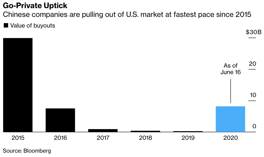在线分类广告公司58.com成为今年第四家宣布从美国交易所退市的中国公司。这些交易的累计价值达到81亿美元,已经是自2015年以来最多的,而距离年底还有半年时间。首次公开募股(IPO)方面也是如此,全球银行已经开始放弃与中国公司在美国上市的交易。最新的案例是瑞银退出中国最大的LGBTQ约会应用的IPO。再加上华盛顿似乎准备通过可能迫使中国公司退出美国交易所的立法,这些发展似乎指向金融脱钩的威胁愈发明显。