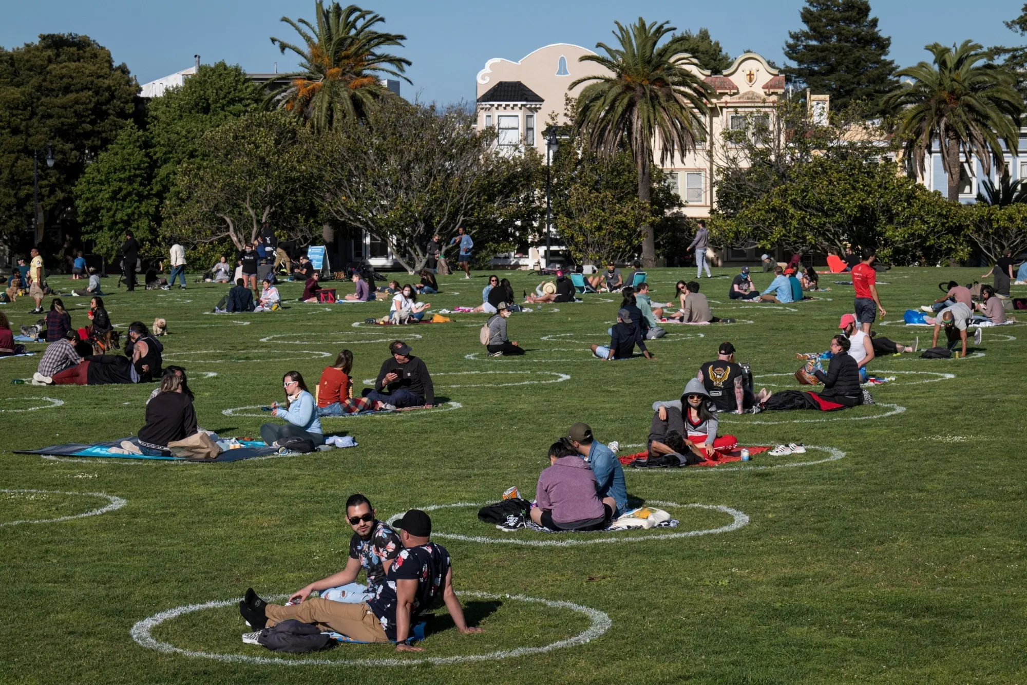人们在旧金山的多洛雷斯公园草地上躺在划定的圈子里,以促进社交距离,时间是5月21日。摄影师:大卫·保罗·莫里斯/彭博社点击这里 查看彭博社过去一周最引人注目的政治图片,并告诉我们我们的表现如何或我们遗漏了什么,联系 [email protected]