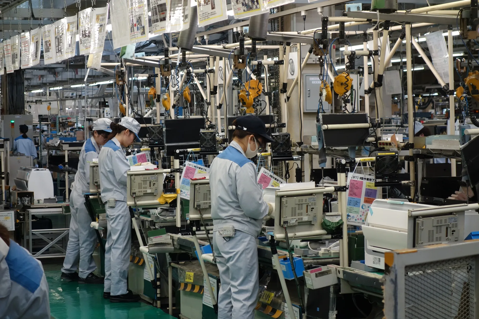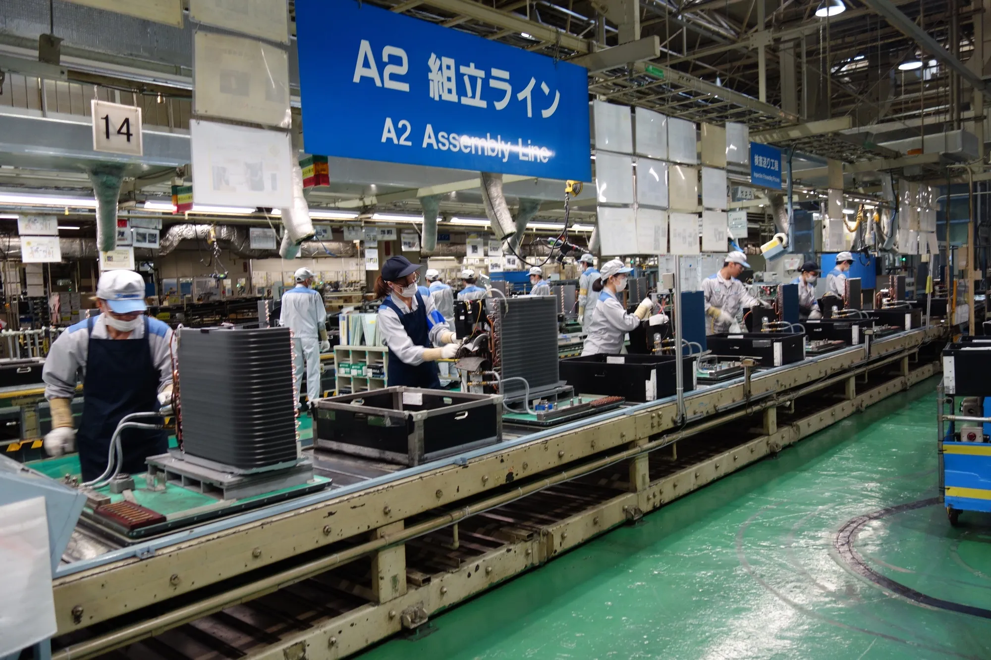 员工在草津的家用空调生产线上工作。