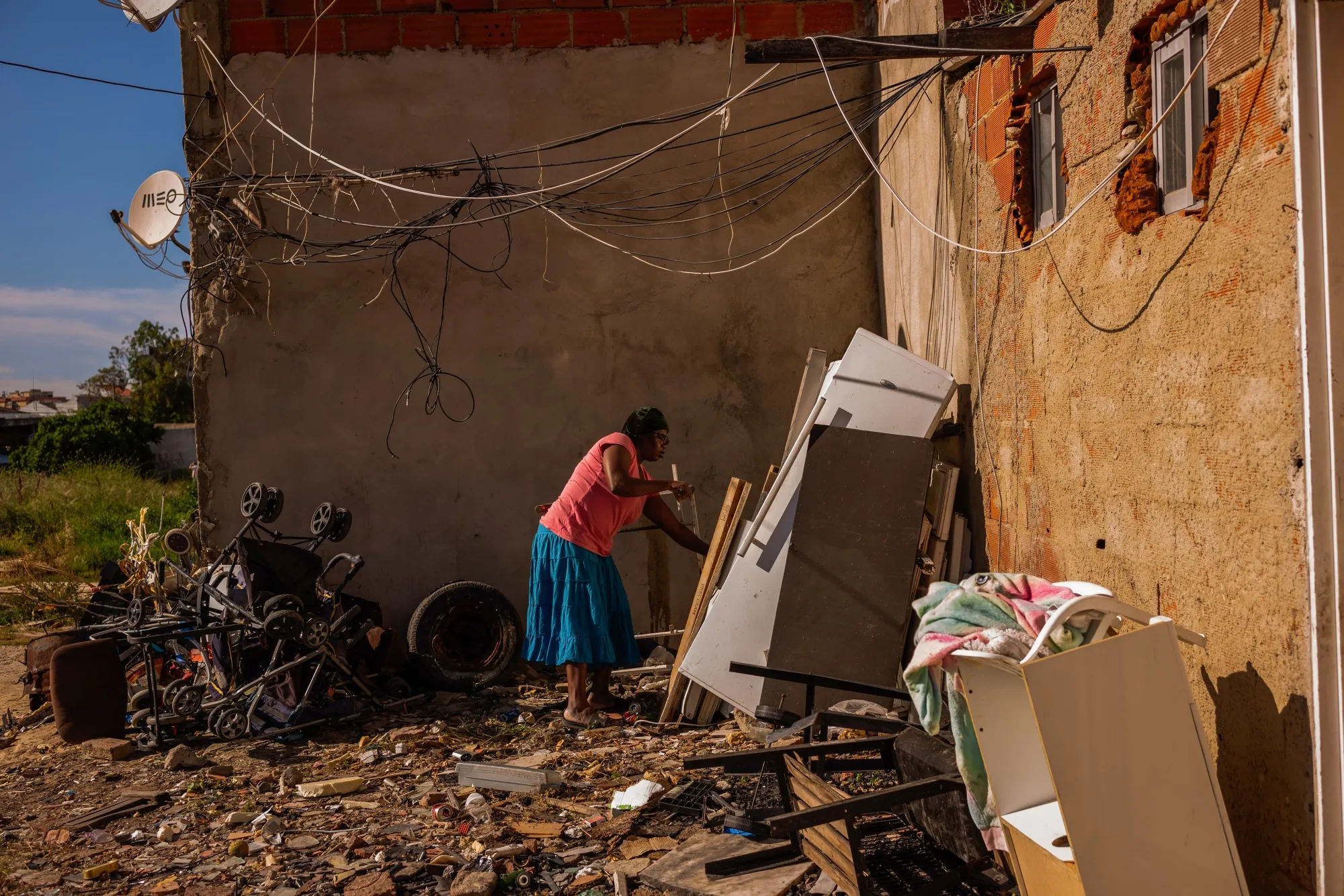 一名女性在里斯本郊区清理她家后院。摄影师:何塞·萨门托·马托斯/彭博社