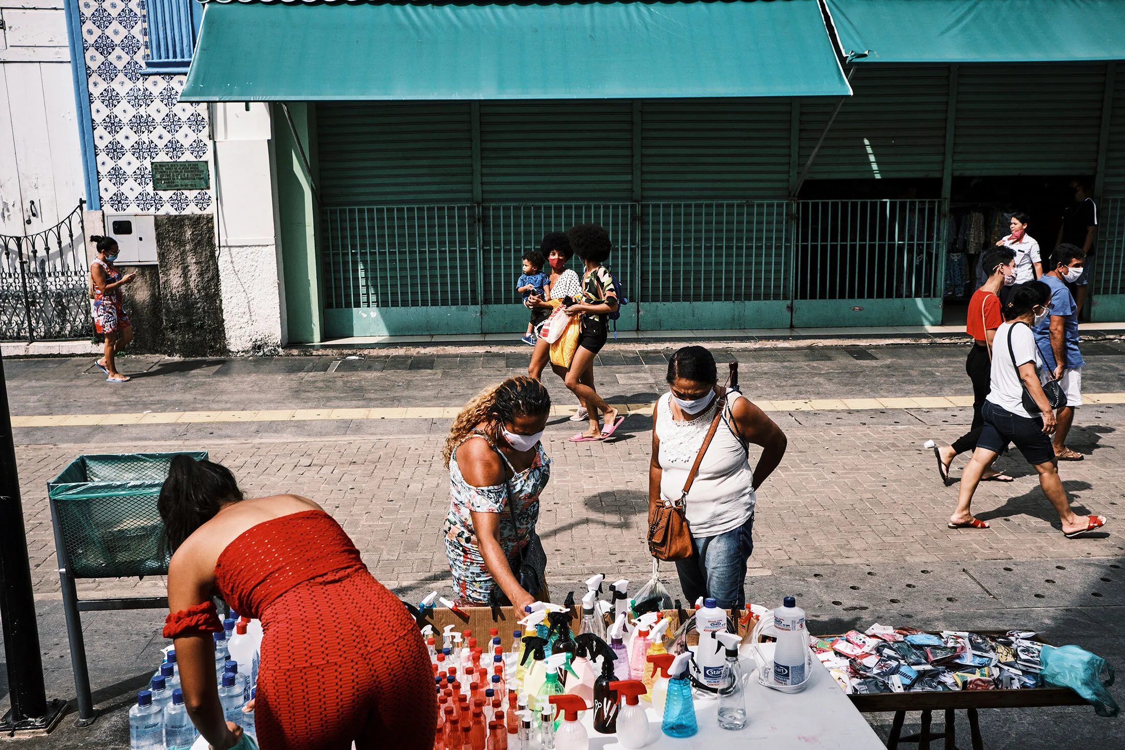 她在便利店的工作也消失了,因此与父亲、两个兄弟和两个孩子一起分享她简陋住所的卡斯特罗无处可去。尽管新冠病毒在巴西东北部广泛传播,但她没有戴口罩。她拥挤的邻里里也没有人戴口罩,基本服务被忽视,以至于许多居民无法获得干净的水。