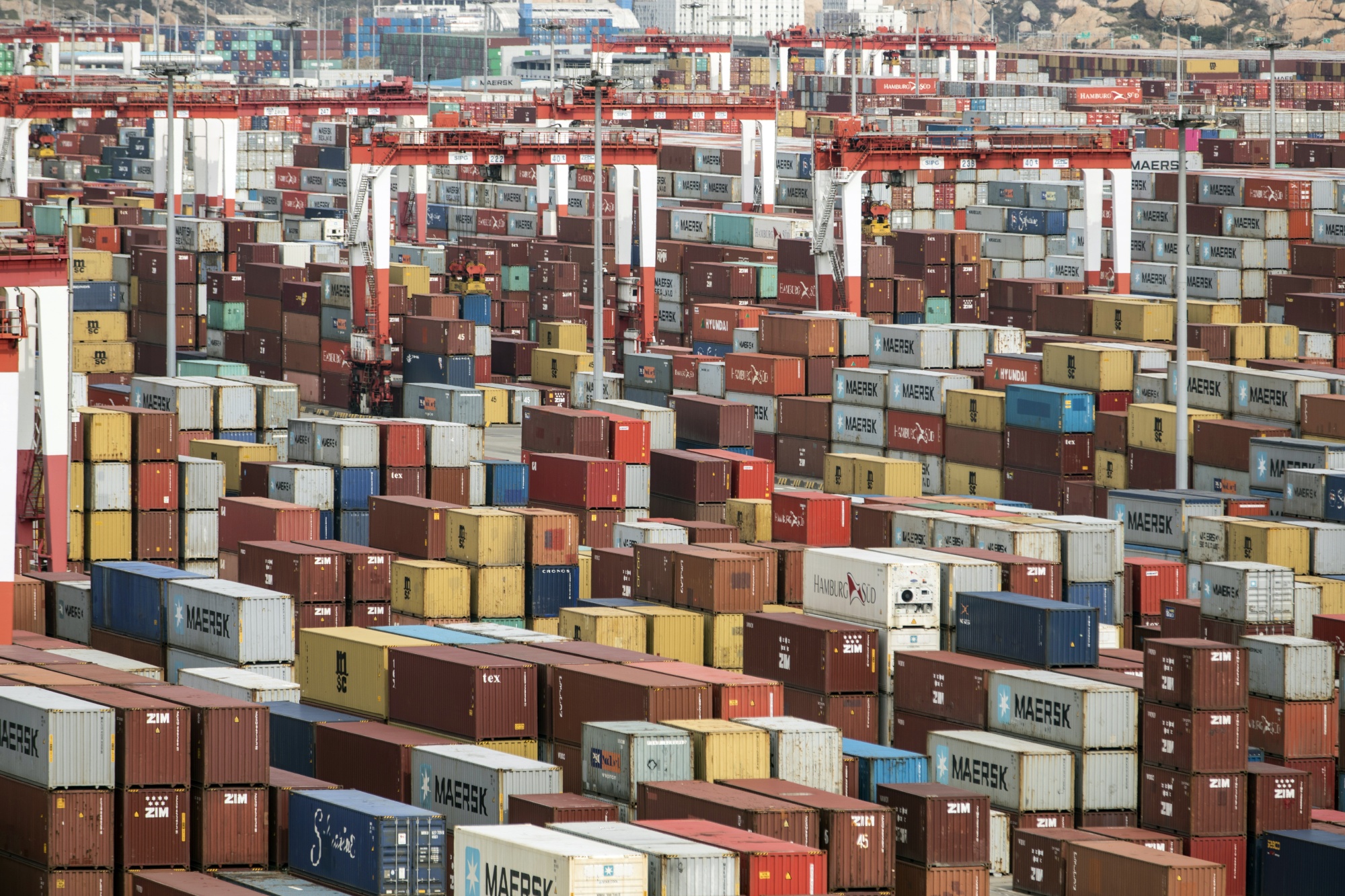2020年3月23日,星期一,中国上海洋山深水港的集装箱。
