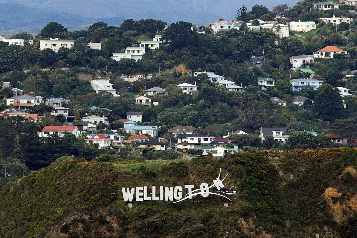 “惠灵顿被吹走”标志展示在山坡上。摄影师:Hagen Hopkins/Getty Images### 挑选赢家