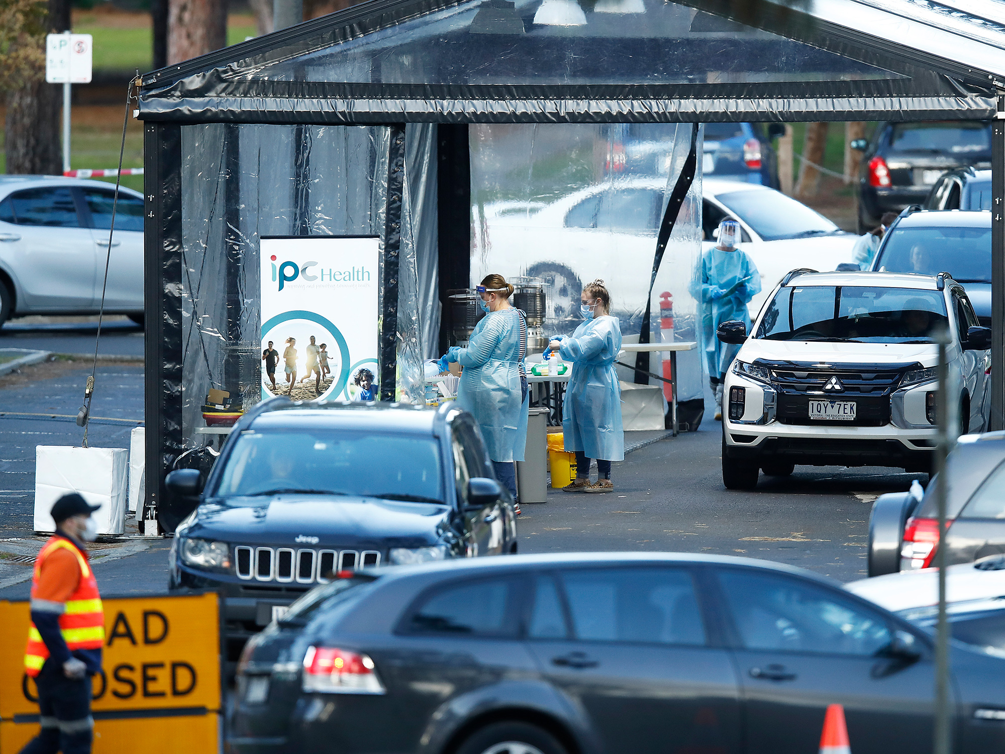 墨尔本临时检测点的Covid-19检测工作人员。