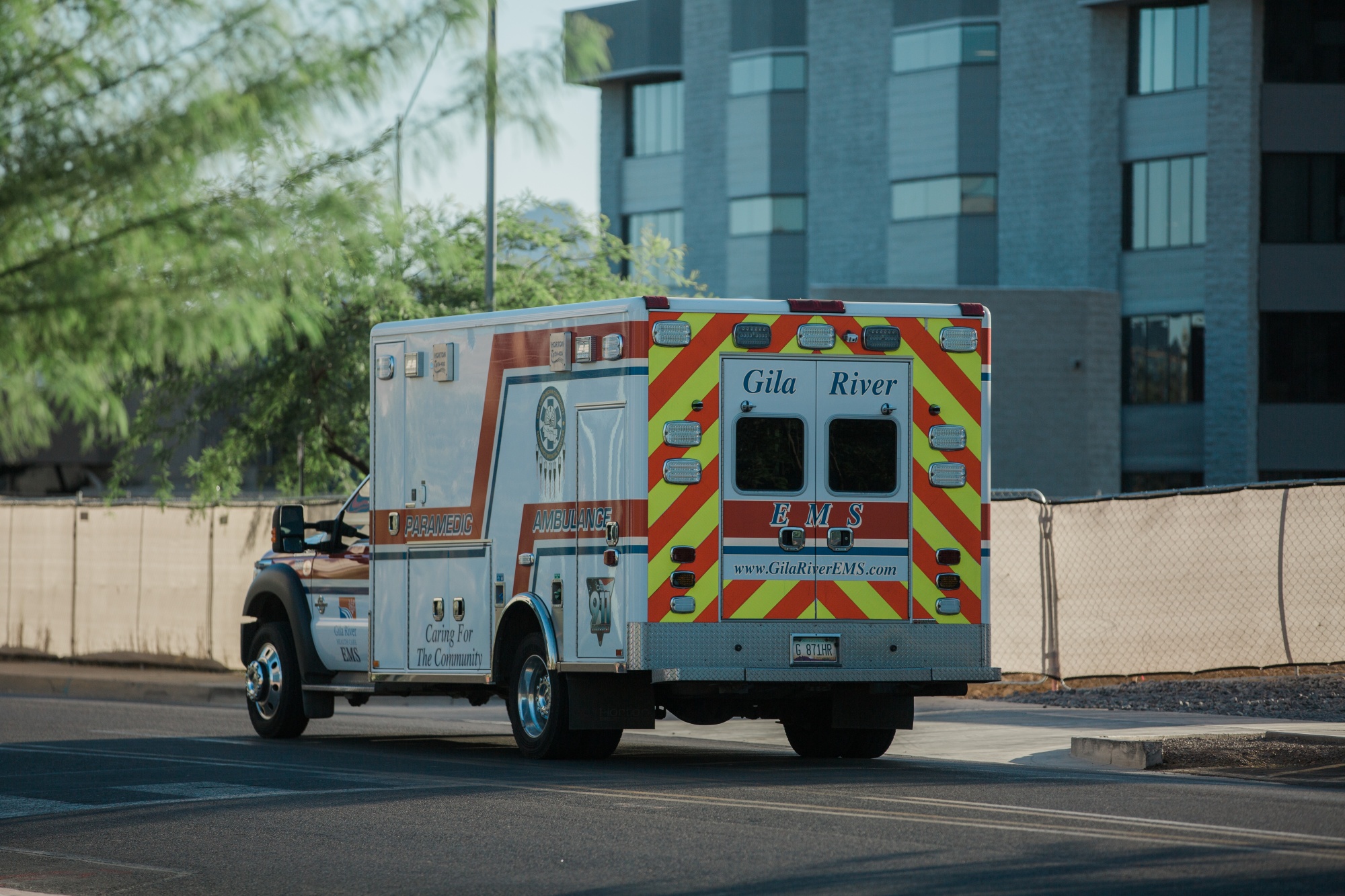 亚利桑那州凤凰城的Banner大学医疗中心外,一辆吉拉河救护车于6月17日驶离。亚利桑那州已成为美国最新的冠状病毒热点之一,日均病例的每周平均值比两周前翻了一番以上。