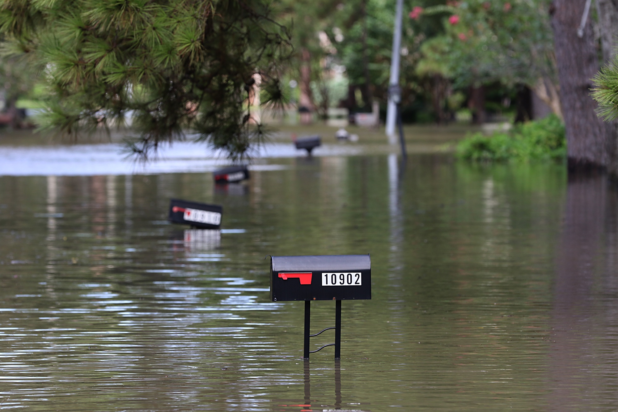 2017年8月30日,德克萨斯州休斯顿的邮箱从洪水中浮现。