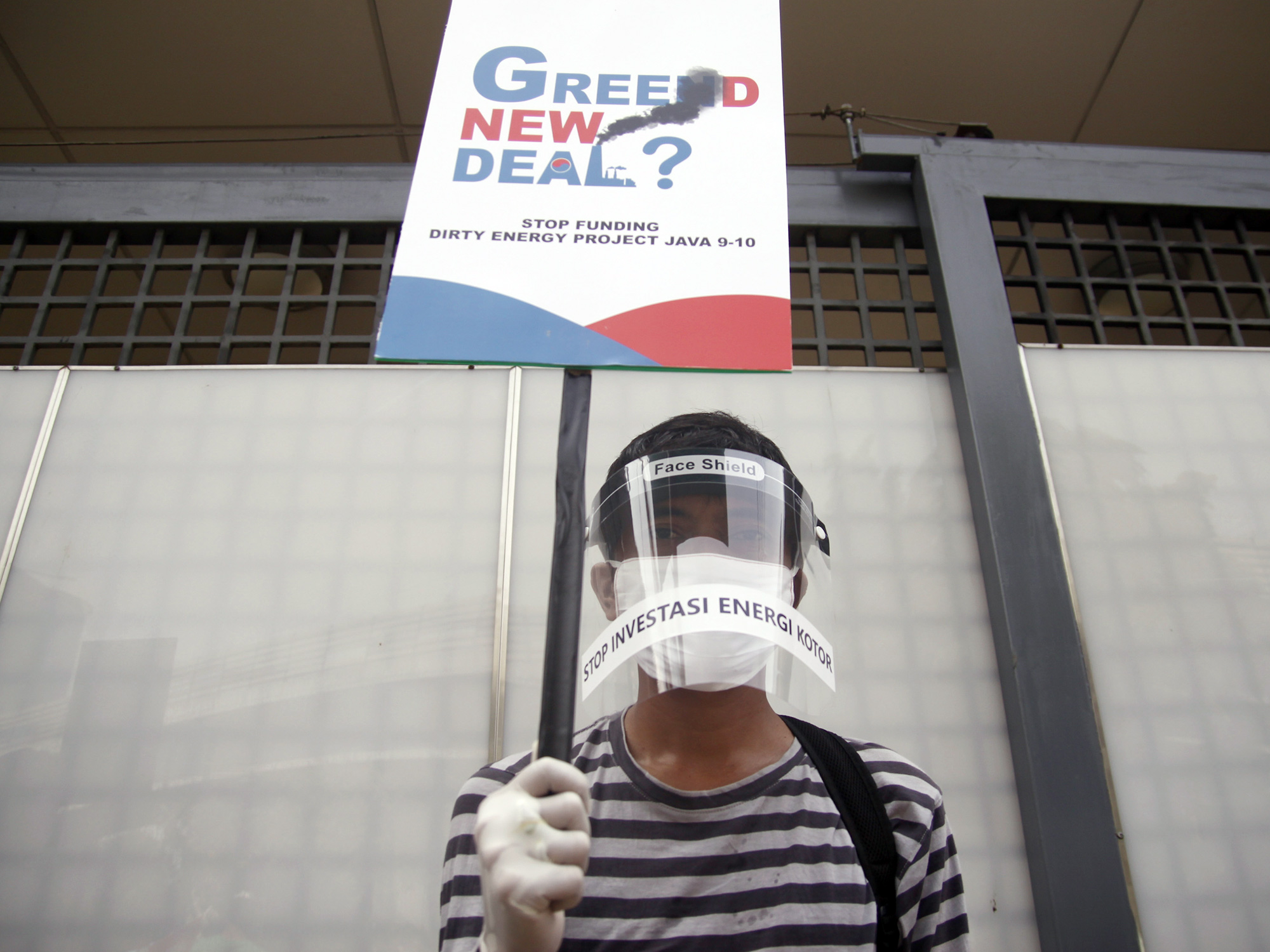 6月25日,气候抗议者在雅加达韩国大使馆外摄影师:NurPhoto/Getty Images韩国电力公司批准参与印尼煤电项目的计划,尽管全球对减少最污染化石燃料的压力不断增加。