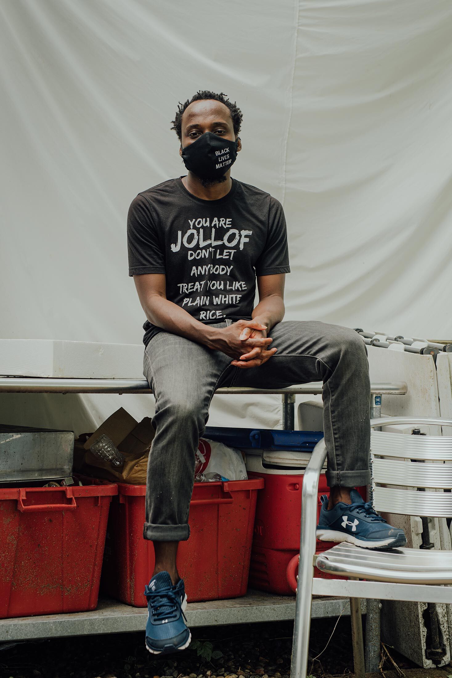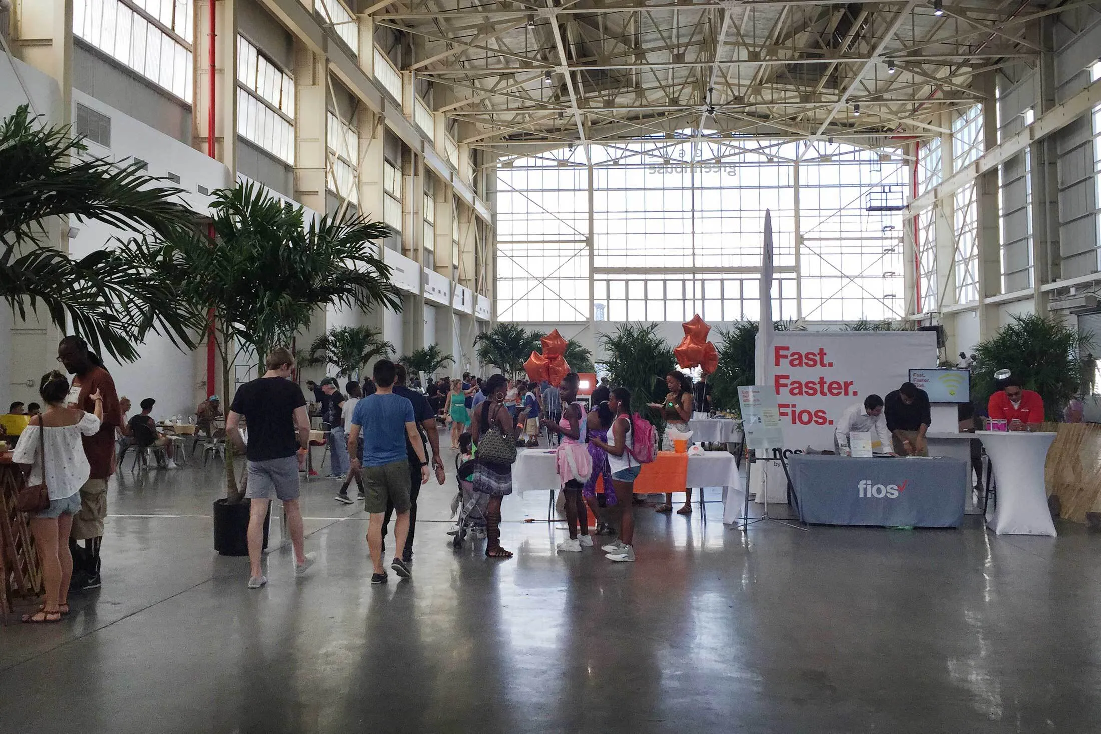 2016 年纽约市非洲美食节。摄影师:Judith Aidoo-Saltus节日的第一天一片混乱。许多参与者的票上写着错误的地址,而那些找到会场的人则面临接近 100 华氏度的室内温度。(Osekre 没有支付空调费用。)只有少数几家食品供应商——而不是宣传的几十家——排队等候的时间长达一个小时。工作人员分发的颜色编码手环与票价对应,但与客人所获得的服务无关。饮料似乎没有冰;工作人员会定期推出一托盘水,收费 5 美元一瓶。