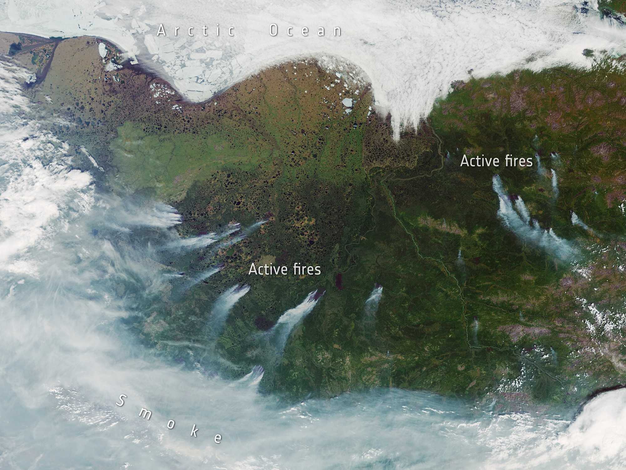 北极地区的升温速度是全球其他地区的两倍,导致海冰融化速度超过科学家的预测。从西伯利亚扩散到北极的暖空气并不直接引发野火,但与低土壤湿度和低降水量结合,可能会导致火灾蔓延的条件成熟。