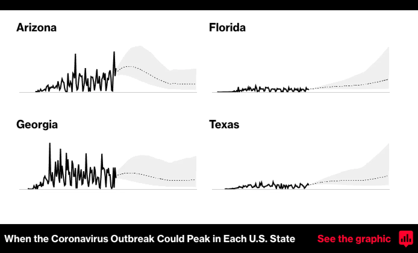 随着国家进入七月四日假期,官员们呼吁公民留在家中,以减轻疫情的影响。最新的预测包括可能出现第二波死亡潮,预计到十月将有多达199,000人死亡。