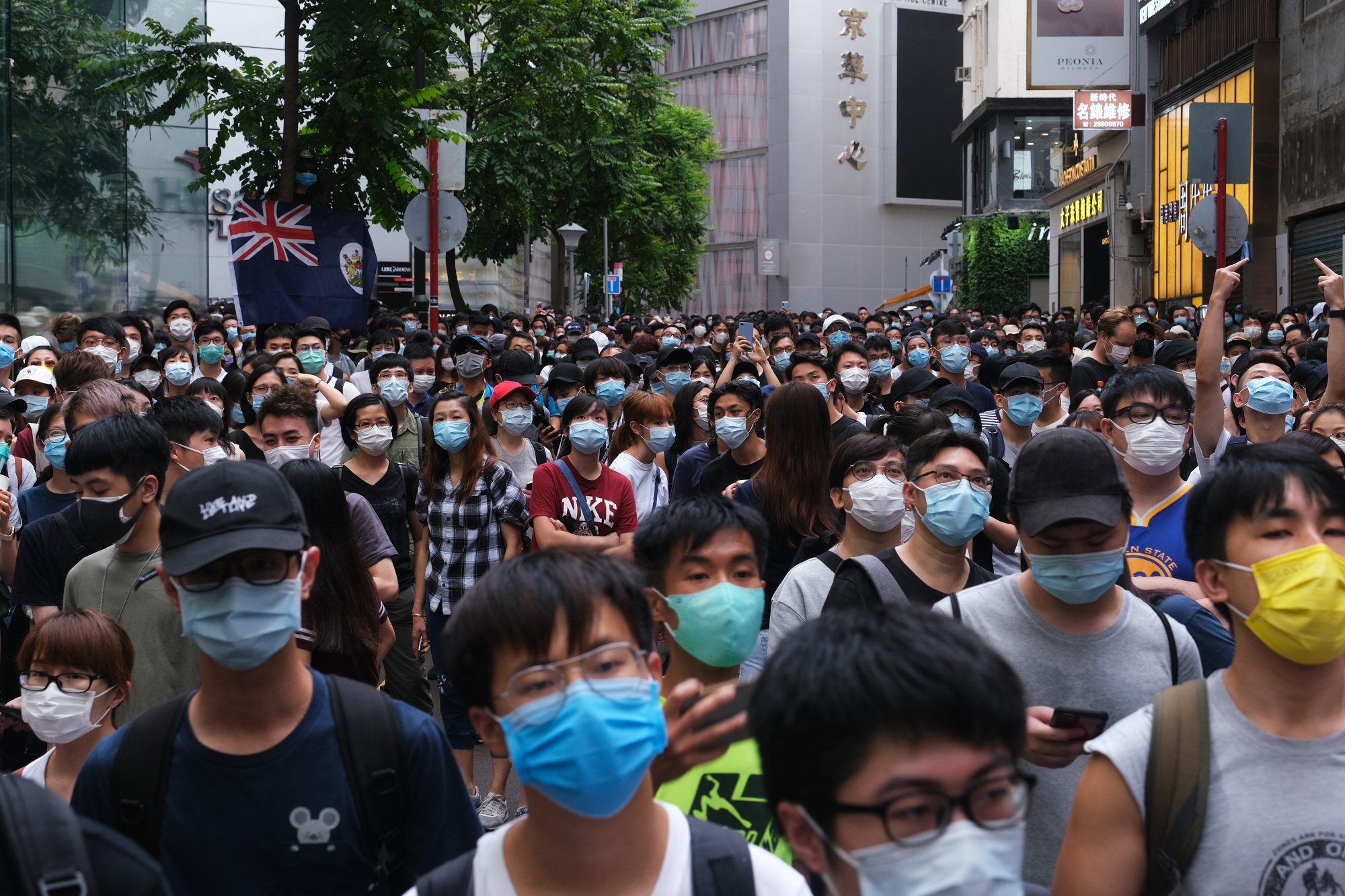 示威者在7月1日香港铜锣湾地区的抗议活动中。中国已开始实施一项旨在压制前英国殖民地异议的新法律。