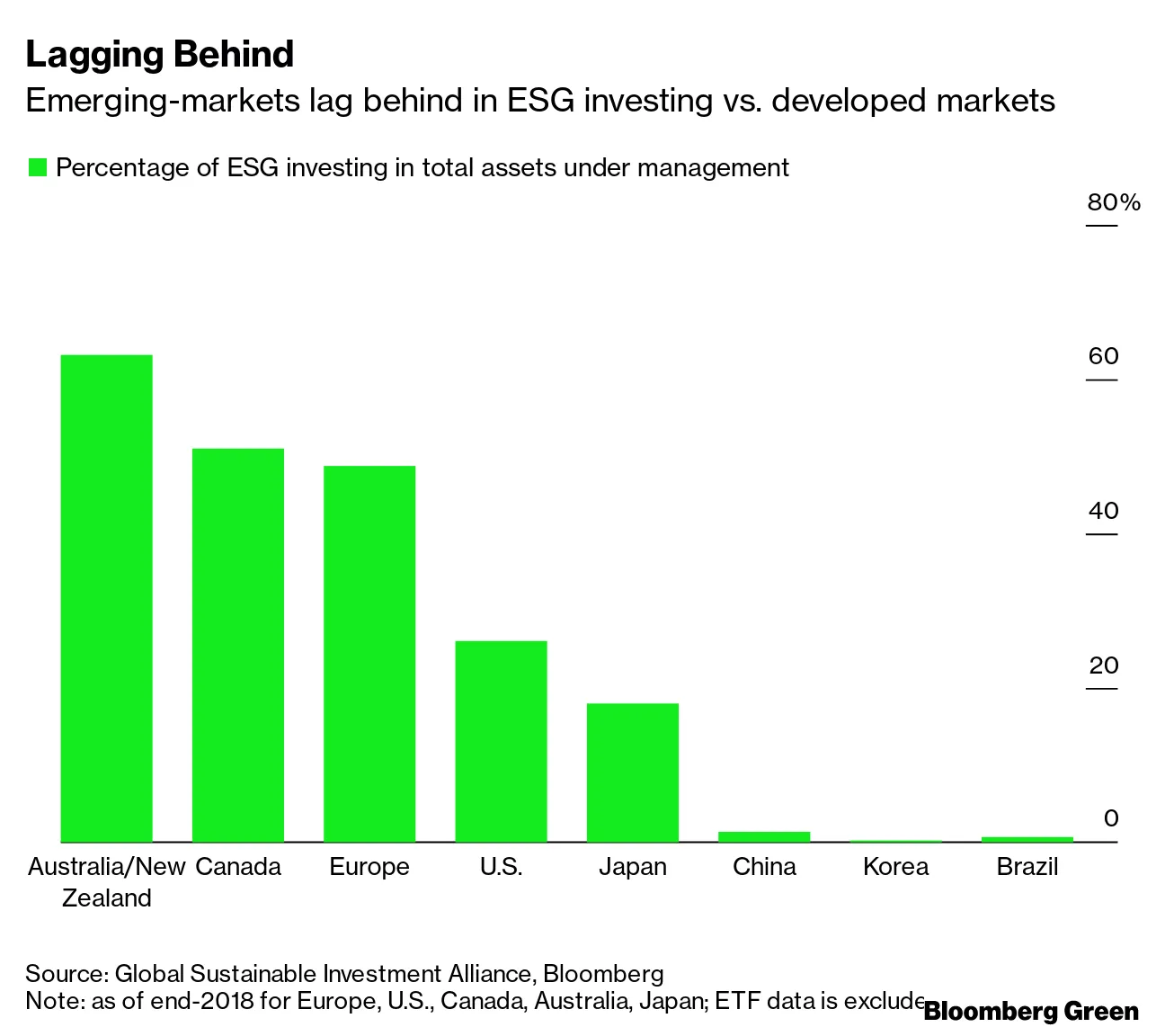 * 新兴市场是 ESG的下一个重大前沿。目前,环境、社会和治理投资在韩国仅占管理总资产的0.2%,在巴西为0.6%,在中国为1.4%。