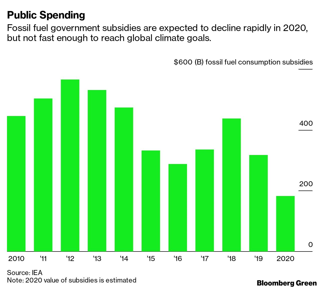 “税收和财政补贴确实改变了投资格局,”非营利组织油变国际的研究分析师布朗温·塔克说,该组织致力于追踪化石燃料的真实价格。该组织发现,自2015年巴黎协定签署以来,G-20国家每年仍向石油、天然气和煤炭行业提供至少770亿美元的公共融资。这比这些国家在同一后巴黎时期提供给清洁能源的补贴还要多三倍以上。尽管如此,国际能源署上个月表示化石燃料补贴开始下降,最近因冠状病毒引发的价格下跌为各国提供了脱离的机会。补贴的下降不一定足够快以阻止全球变暖,但可能足以对已经受到重创的化石燃料行业造成更多损害。