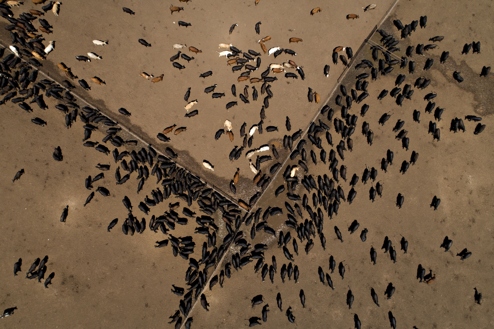 肉牛在德克萨斯州弗洛雷斯维尔的饲养场中站立。