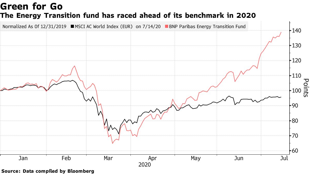 管理者的仅多头 法国巴黎银行能源转型基金 根据彭博社汇编的数据,今年的表现超过了99%的同行。