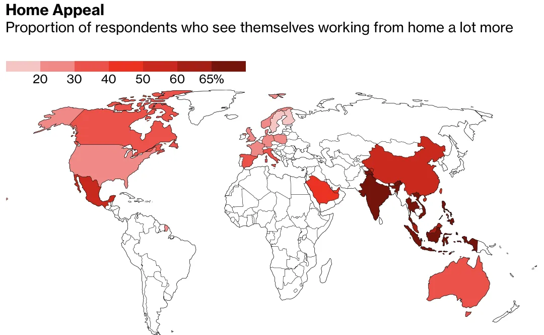 调查于6月22日至30日进行;26个国家的27,681名受访者来源:YouGov。野火风险地图可能导致加州人重蹈覆辙。 (彭博社) + 以色列在7月1日放弃了对巴勒斯坦约旦河谷的非法吞并,但如果继续进行,该地区复杂的地图将会是什么样子。 (半岛电视台) + 谷歌地图推出了一系列新功能,提醒用户有关疫情相关的地图特征。 (CNN) + 受访者认为在家工作是“新常态”的地方 (彭博社) + 你住在郊区吗?这里有一种基于数据的方法来判断。 (城市实验室)