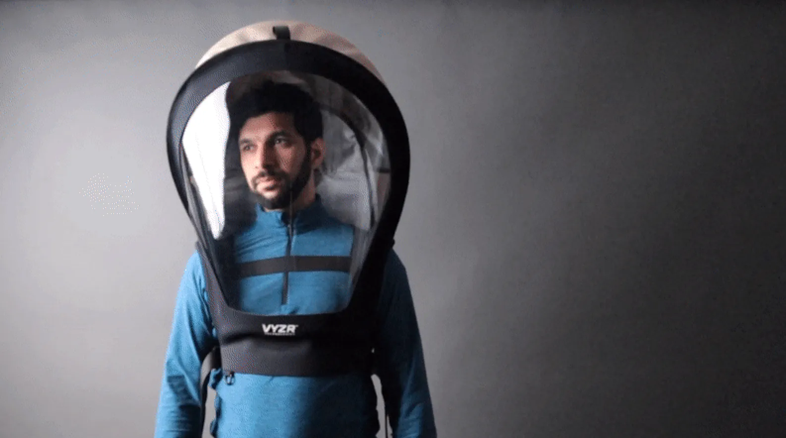 **最大旅行安全?**VYZR Technologies推出了一款250美元、三磅重的防护服,配备紧密封闭的防雾窗户和内置医院级空气净化设备,可运行12小时的电池。