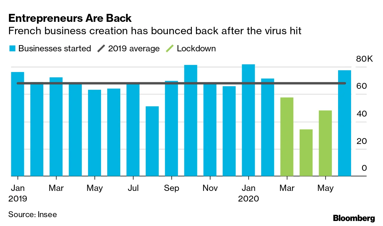 法国企业在六月的启动激增,迅速 恢复到危机前的水平,之前在封锁期间出现了下滑。数据显示,冠状病毒大流行可能改变经济的形态,尤其是在新快餐公司和家庭配送服务的数量上出现了强劲的激增。