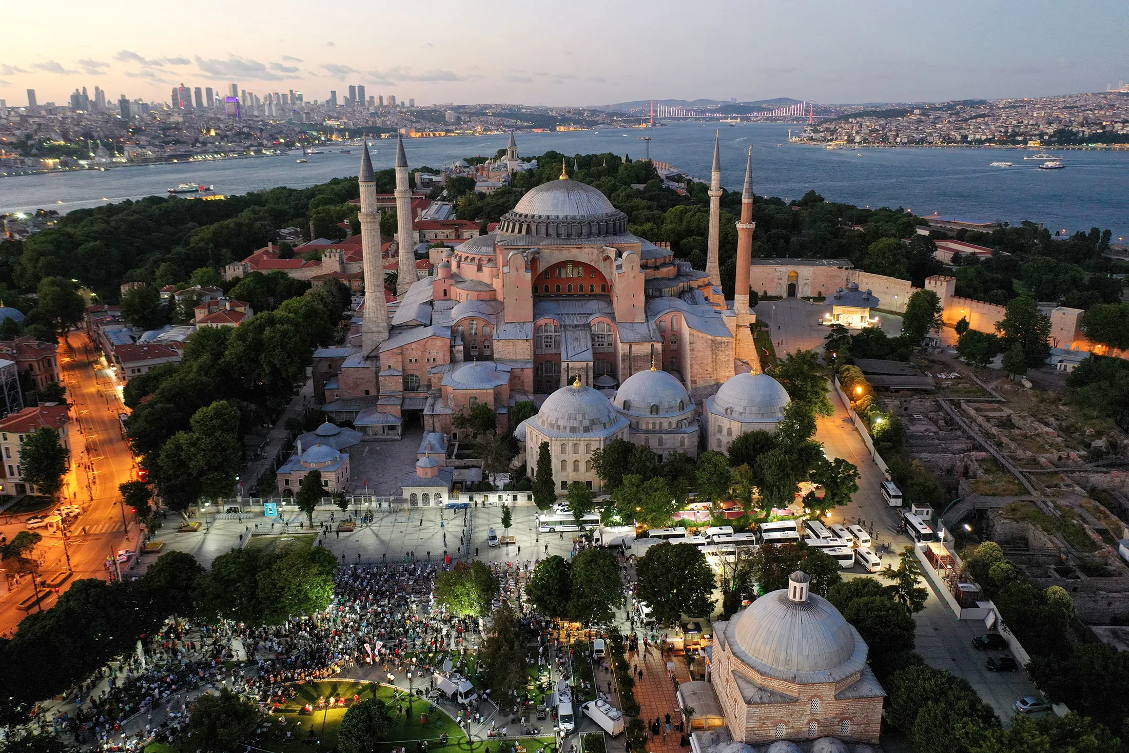 盛大开幕 | 在近一个世纪的空白后,伊斯坦布尔标志性的圣索非亚今天回响着伊斯兰祷告的声音,土耳其总统雷杰普·塔伊普·埃尔多安在第一次服务中与信徒们同在,此次服务是自从其从博物馆重新转变为清真寺以来的首次。此举旨在提升埃尔多安在国内和穆斯林世界的受欢迎程度,但遭到了国际社会的广泛批评。尽管如此,他的支持者们感到高兴,数百名男子在外面过夜睡觉和祷告。