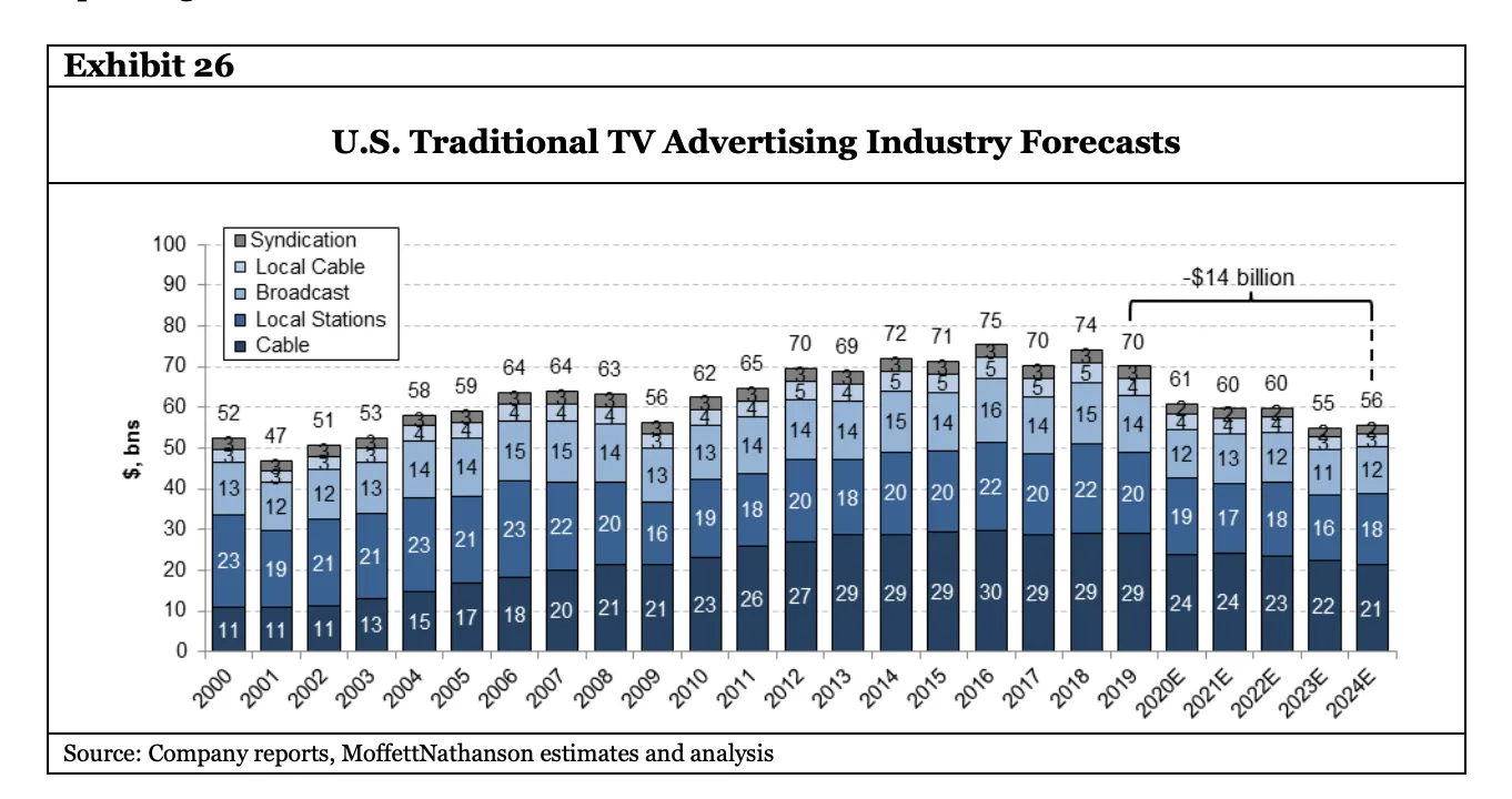 - 相关阅读:华尔街分析师迈克尔·纳森森关于广告支持的在线视频崛起的说明,其中包括关于电视广告未来的这张丑陋图表: