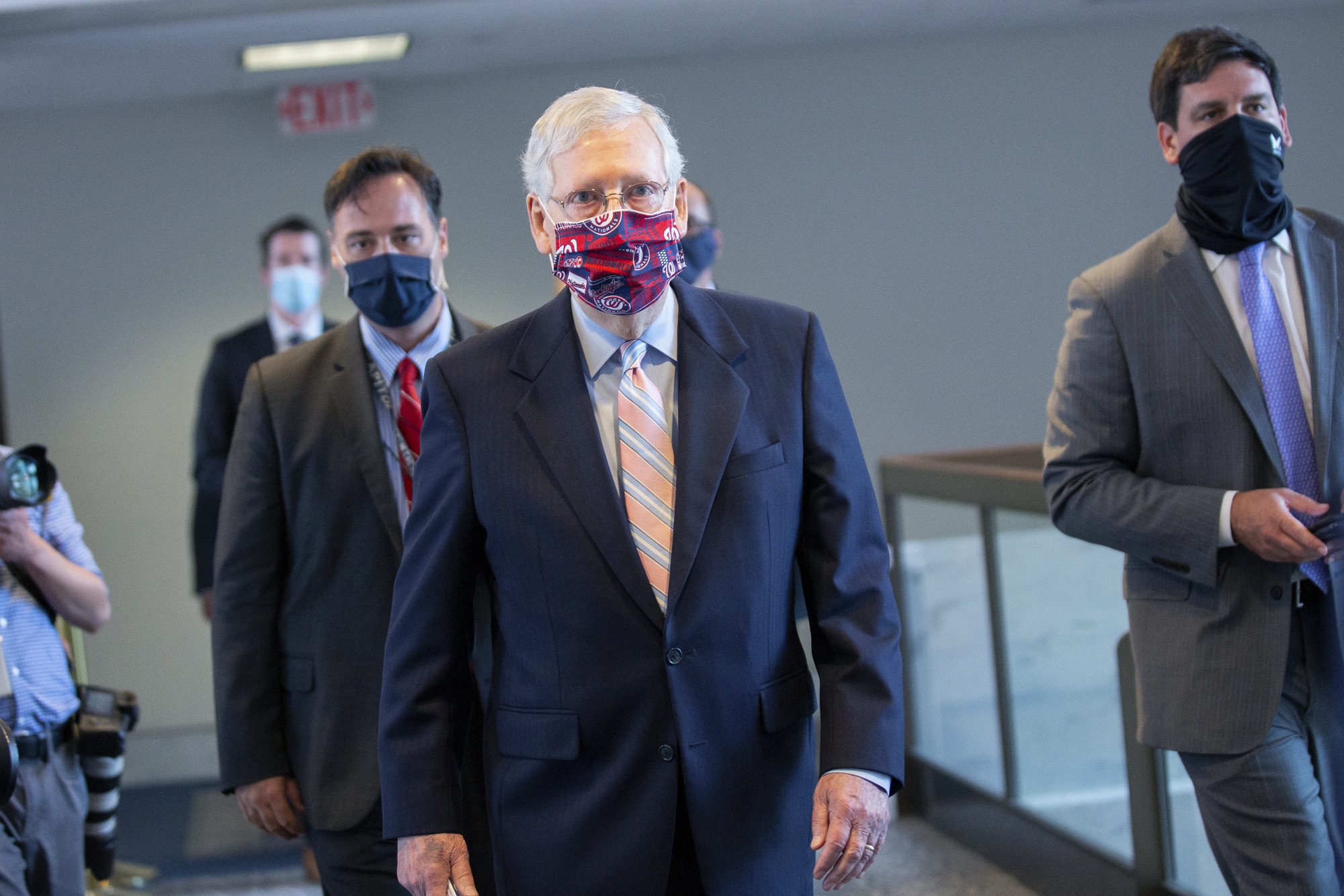 参议院多数党领袖米奇·麦康奈尔在华盛顿特区国会山与记者交谈后离开,参加了周二的参议院共和党政策午餐。