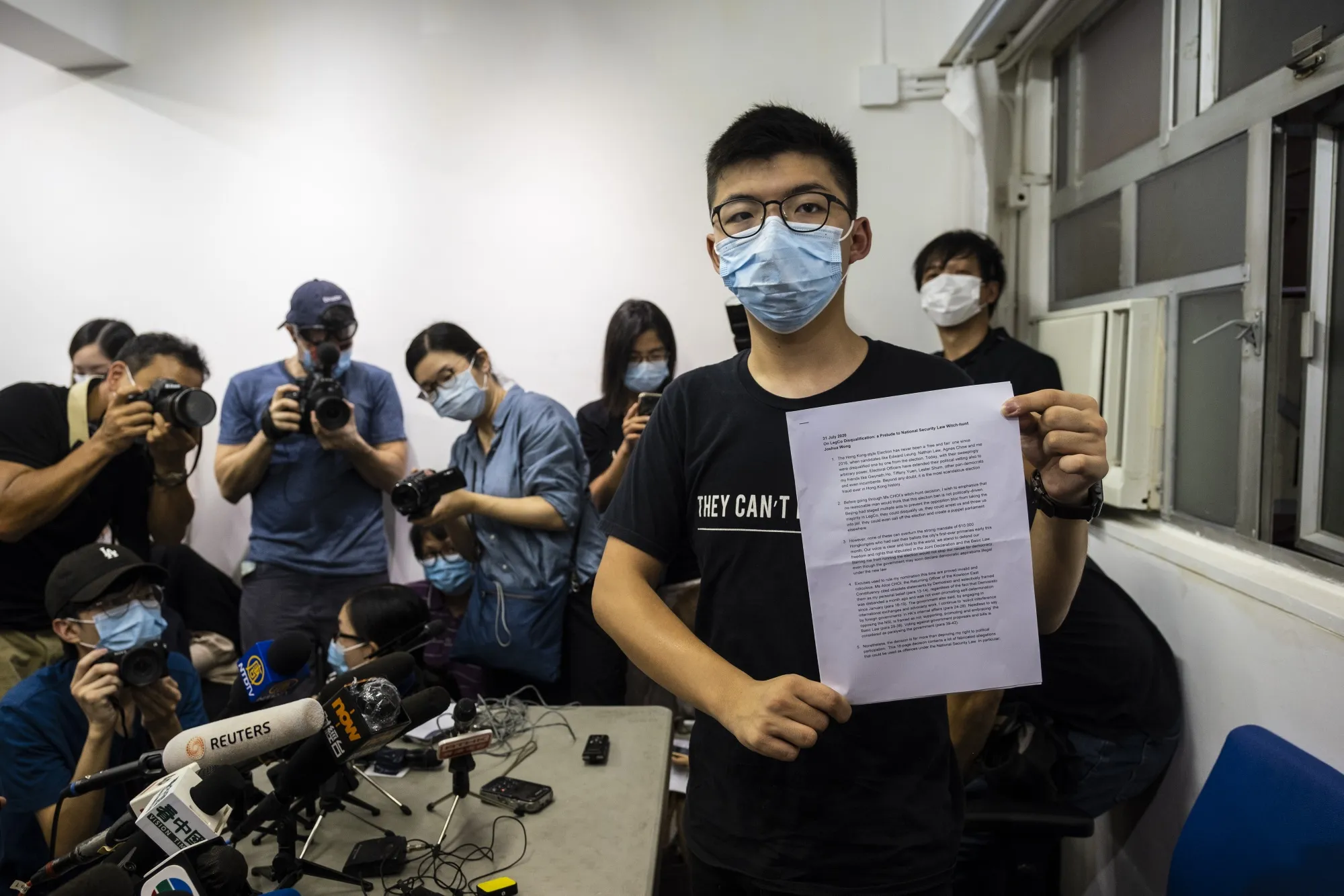 黄之锋在今天的新闻发布会上与他的准备演讲稿合影。摄影师:陈龙辉/彭博社加拿大丑闻 | 总理贾斯廷·特鲁多否认他因与WE慈善机构的关系而授予该机构管理学生补助计划的合同的指控。他昨天在下议院财政委员会的罕见露面是试图扑灭笼罩在他政府疫情应对上的丑闻的火焰。他表示,事后看来,他应该在内阁对此事的决定中回避。