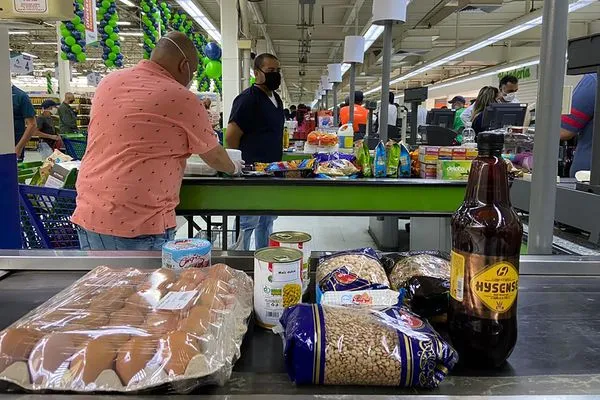 人们在Megasis支付杂货费,这是加拉加斯第一家伊朗超市。摄影师:亚历克斯·瓦斯奎兹/彭博社