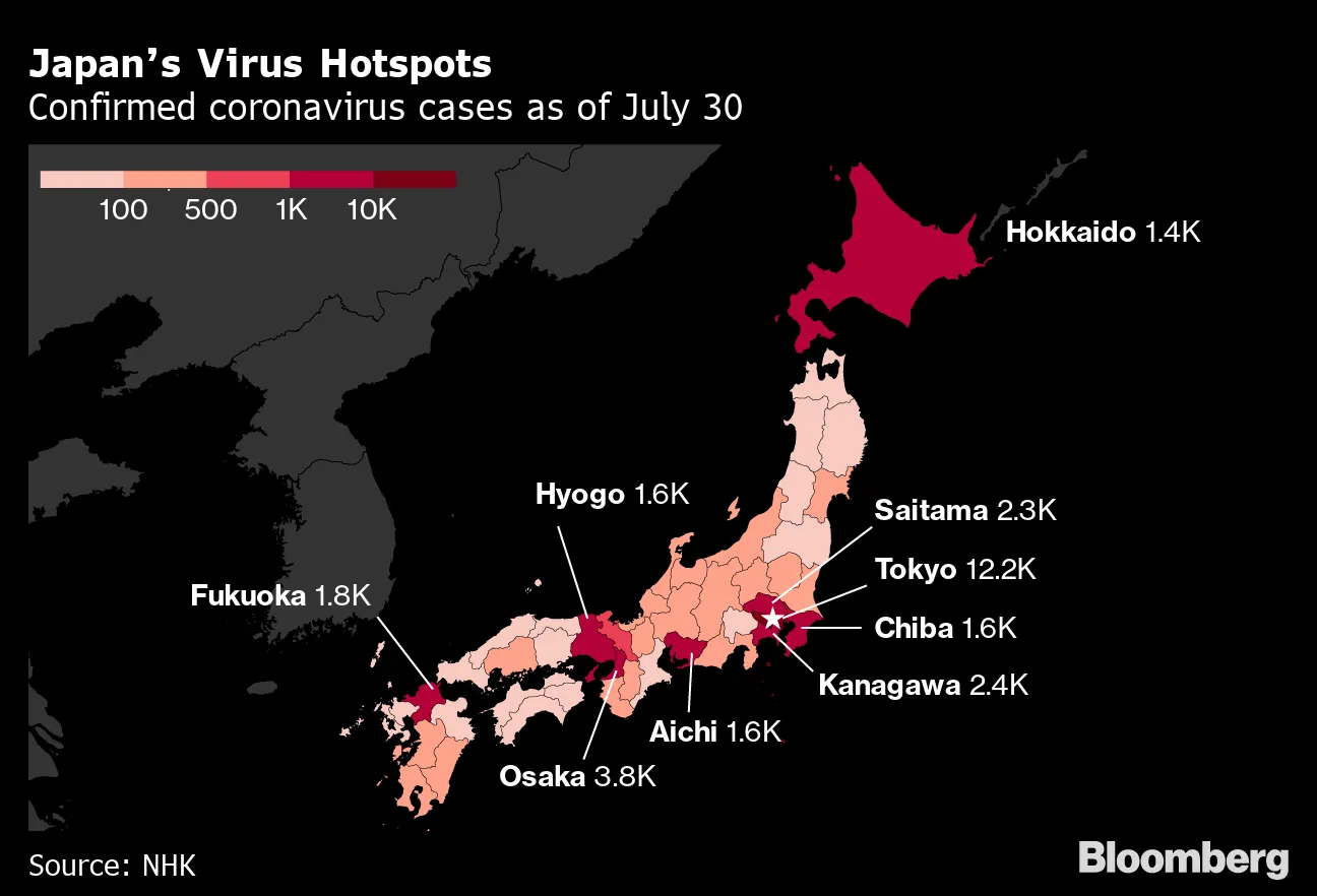 最初集中在首都的感染已扩散到其他城市地区,而几个月没有病例的地区已成为新的热点。而患者人群——最初是年轻人,较少出现重症——正在扩大到老年人,这让人担忧,因为日本是世界上老年人口最多的国家。