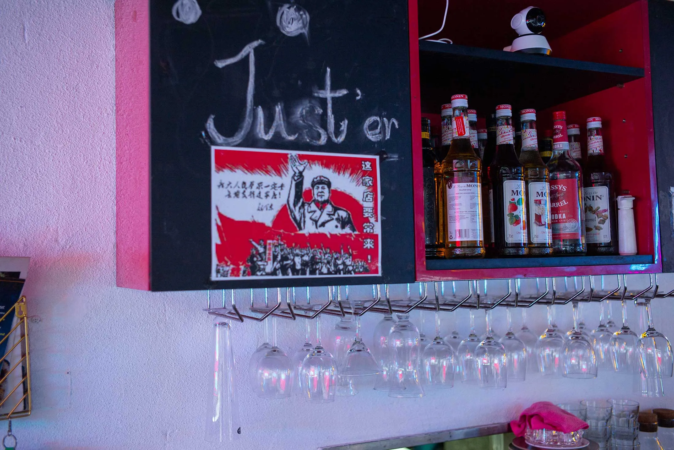 8月2日在Just’er酒吧和餐厅的一张毛时代海报。摄影师:Billy H.C. Kwok为彭博商业周刊拍摄黄商店中的复古海报不仅讽刺:它们对变革的呼吁也是鼓舞人心的,香港尖沙咀区Just’er酒吧和餐厅的共同老板Pong说。此外,他们还让警察不再骚扰他,他笑着说。以前,当这家支持民主的餐厅展示要求香港自由的标语海报时——现在根据国家安全法被视为非法——警察几乎每天在最繁忙的时候都会进来,测量桌子之间的距离,以确保遵守Covid-19社交距离规定。所以Pong上网订购了一堆历史海报,每张大约HK$2(25美分)。他相信自己是第一位开始展示这些海报的餐厅老板,在7月2日法律生效后,他用这些海报替换了自己的支持民主的海报。