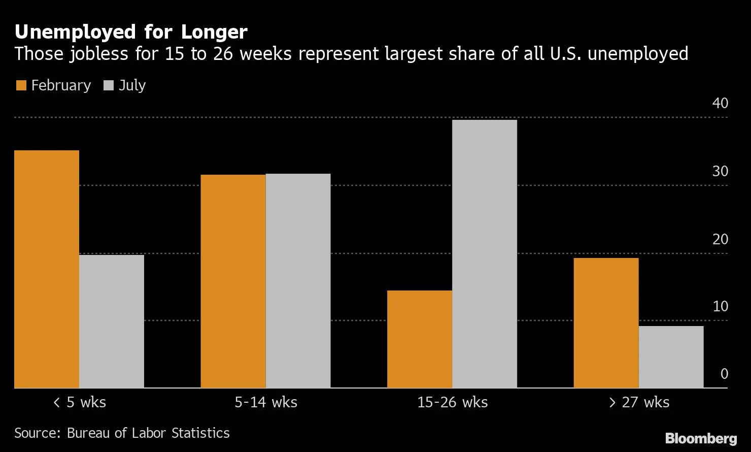 疫情衰退最初有迹象表明这是美国历史上最尖锐但最短暂的经济收缩。但随着经济创伤的迹象出现,这种乐观情绪正在消退,尤其是在美国人失业多久以及有多少人停止寻找工作方面。这次衰退可能和以前的衰退一样漫长和严重。