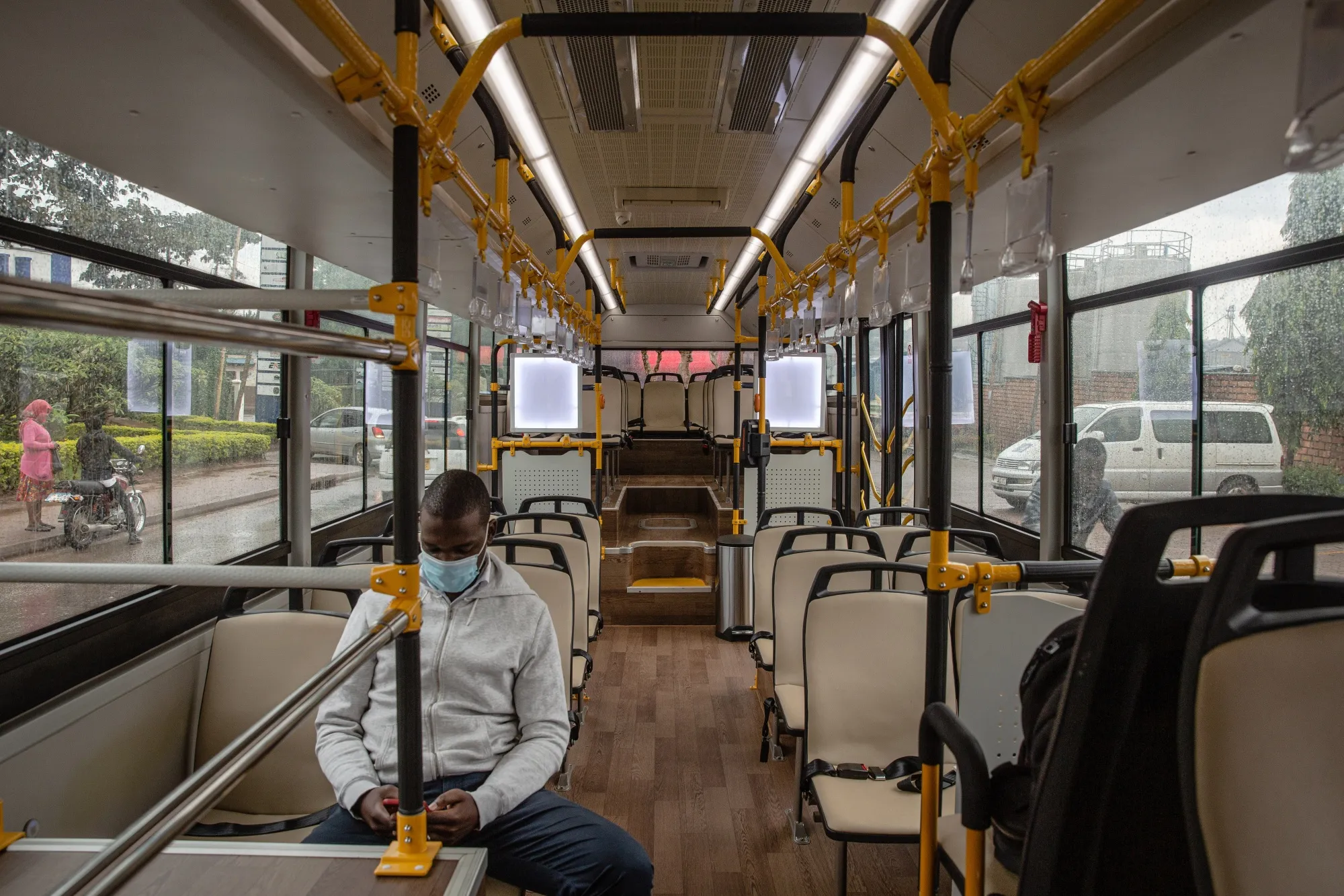 2020年7月17日,乌干达坎帕拉的Kayoola EVS公交车上的一名乘客。摄影师:Esther Ruth Mbabazi/Bloomberg污染是坎帕拉的一个主要问题,官员们已经努力解决这个问题几十年。大多数首都的300万公民乘坐14座的小巴或柴油和汽油摩托车出行。如今,约85%的乌干达车辆是二手的,从其他国家进口,比目前在欧洲和美国街头的类似车型更脏且效率更低。